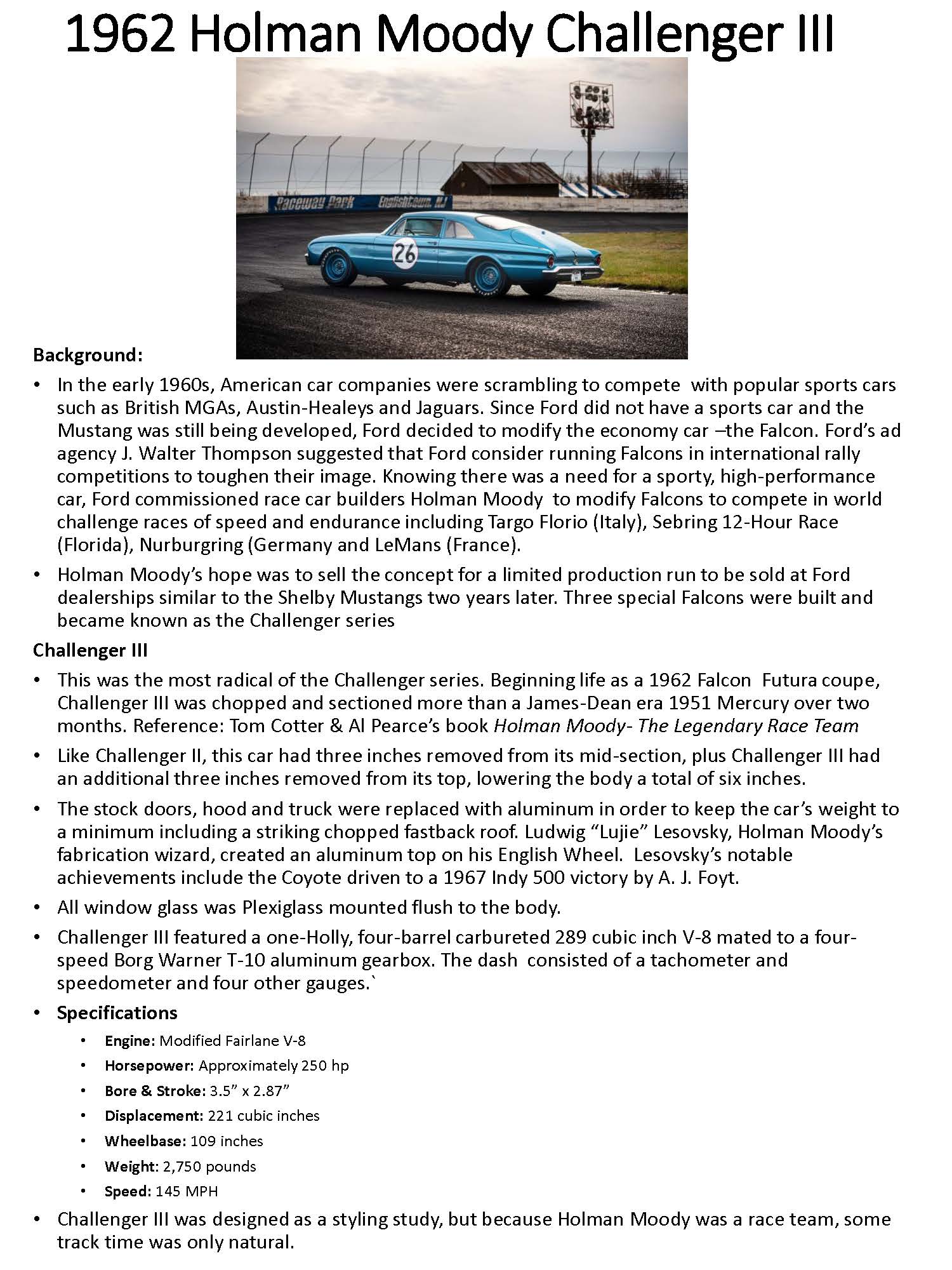 A one-of-a-kind Ford Falcon modified by Holman Moody to compete in world challenge races of speed and endurance.