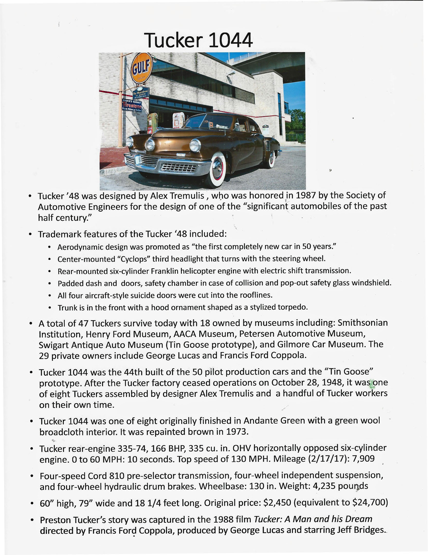 Considered the most awarded and accurate Tucker in the world.