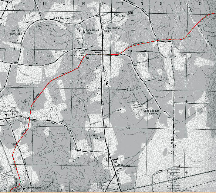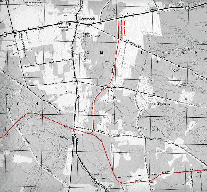 East McLane Drive in Dix Hills to Commack Spur (Harned Road) to Washington Avenue in Hauppauge (1943)