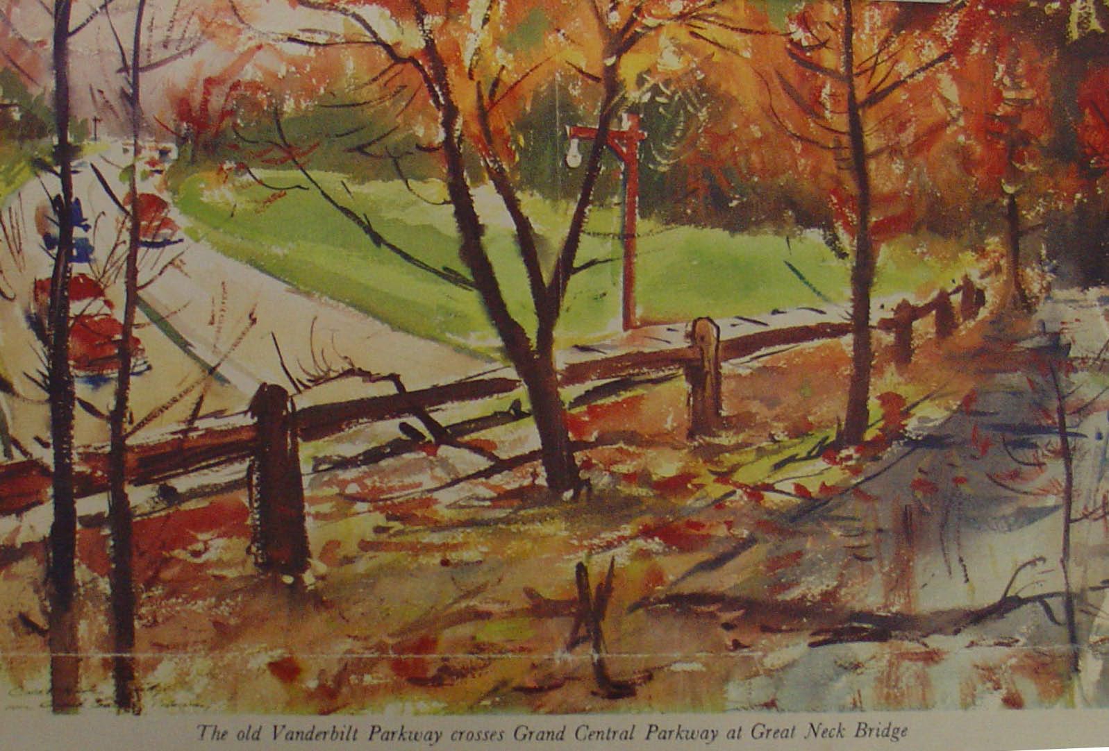 "The Motor Parkway became the marvel of the nation. Almost certainly it was the first road in the country to be built as a paved thoroughfare; it probably was America's first concrete road of any length. In Vanderbilt's single-minded passion for speed, he prohibited trucks, horses and pedestrians on his Parkway, he banked its curves, did away with a speed limit, landscaped its right-of-way.Most important of all, he eliminated all intersections and grade crossings by means of over-and-under passes, permitting access only through gates at certain points. Many of these highway "firsts" have since become standard features in current road-engineering practice- the reason why the... Motor Parkway can claim the title of "Granddaddy of Superhighways". "
