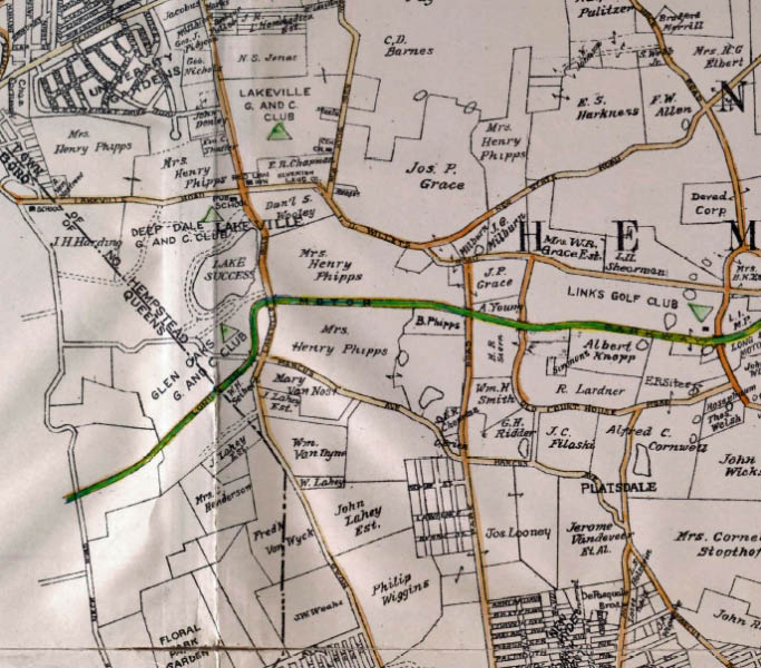 Lake Success and Searingtown. Note the lost village of Platsdale and the estates of the Phipps and Grace families.