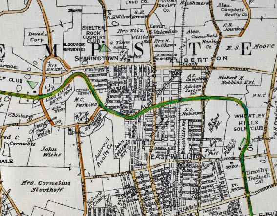 Searingtown and East Williston. Note the large amount of propery owned by the Motor Parkway in Searingtown.