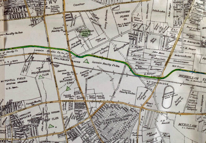 East Meadow and Hempstead Plains (Later Levittown). Note the "Proposed Acqueduct Race Track".