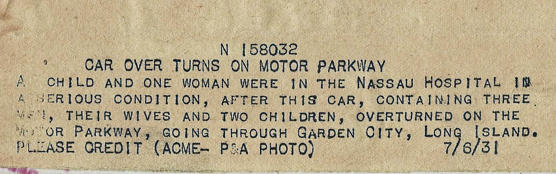 An Accident on the Motor Parkway in Garden City on July 8, 1931- Updated: 10/17/16