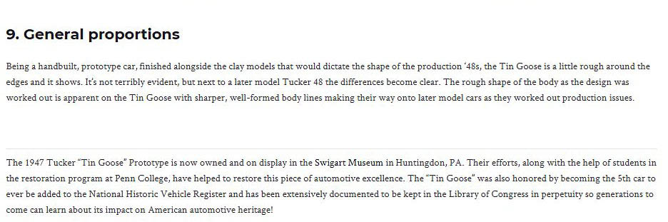 The Tucker Tin Goose Prototype was unveiled on June 19,1947in Chicago, Illinois. In celebration of its 72nd anniversary, below is a an article by the Historic Vehicles Association Quirks of the Tucker 48 "Tin Goose" Prototype, supplemented by images taken of this historic automobile this month.