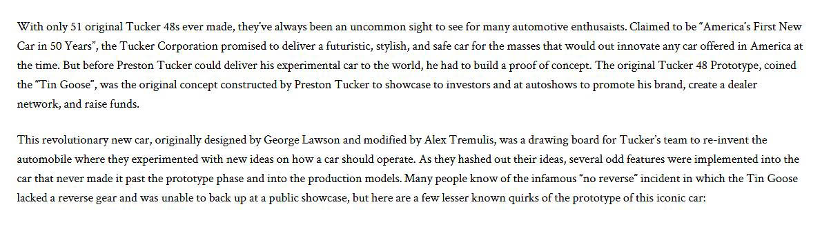 Celebrating the 72nd Anniversary of the Unveiling of the 1947 Tucker Tin Goose Prototype