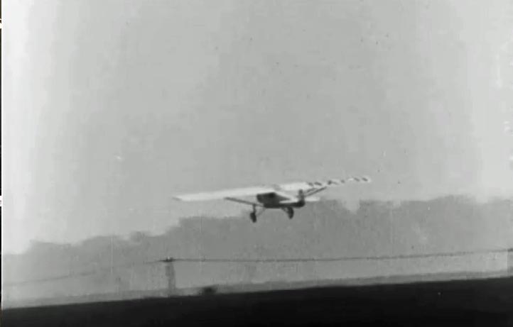 Will Perkins, a real estate appraiser who specializes in airport properties, has assembled news footage of the takeoff from Roosevelt Field on his website. Part 3 of his Lindbergh series shows the takeoff and the Spirit of St. Louis barely making it over the telephone wires on Merrick Avenue.