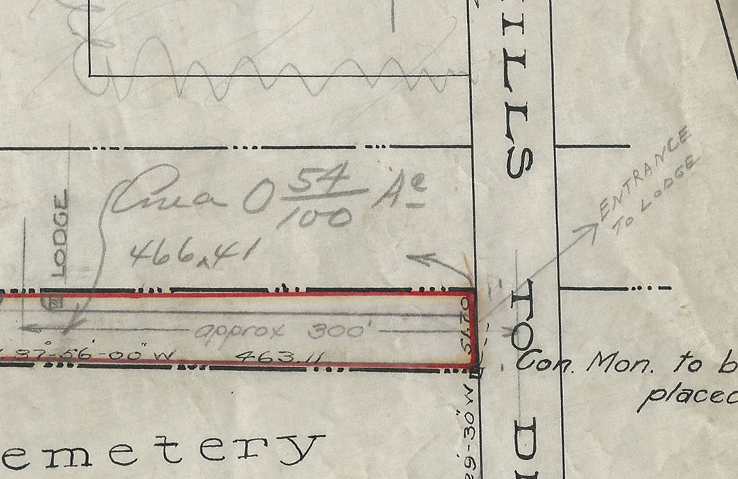 The handwritten notation, south of the Motor Parkway, read "Entrance to Lodge".