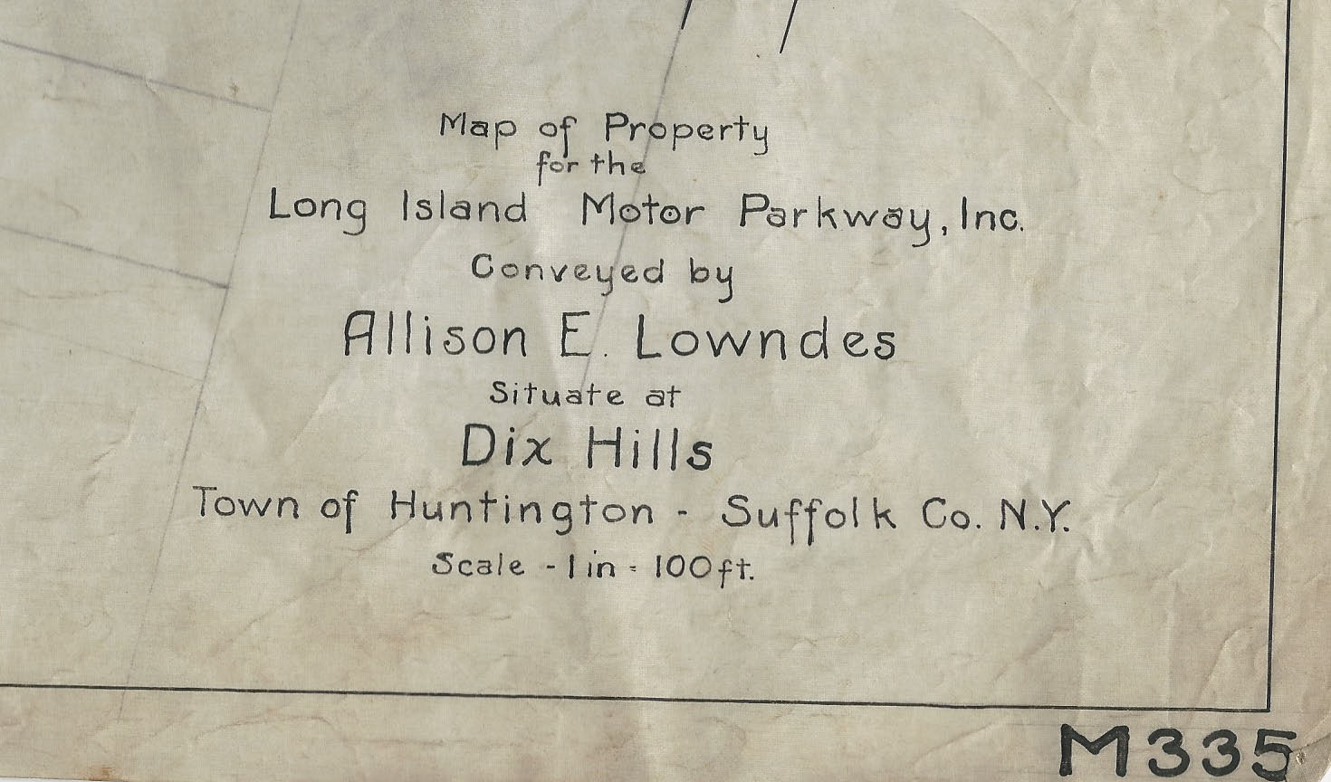 The survey documented the 7.172 acres conveyed by Allsion E. Lowndes to the Long Island Motor Parkway, Inc.
