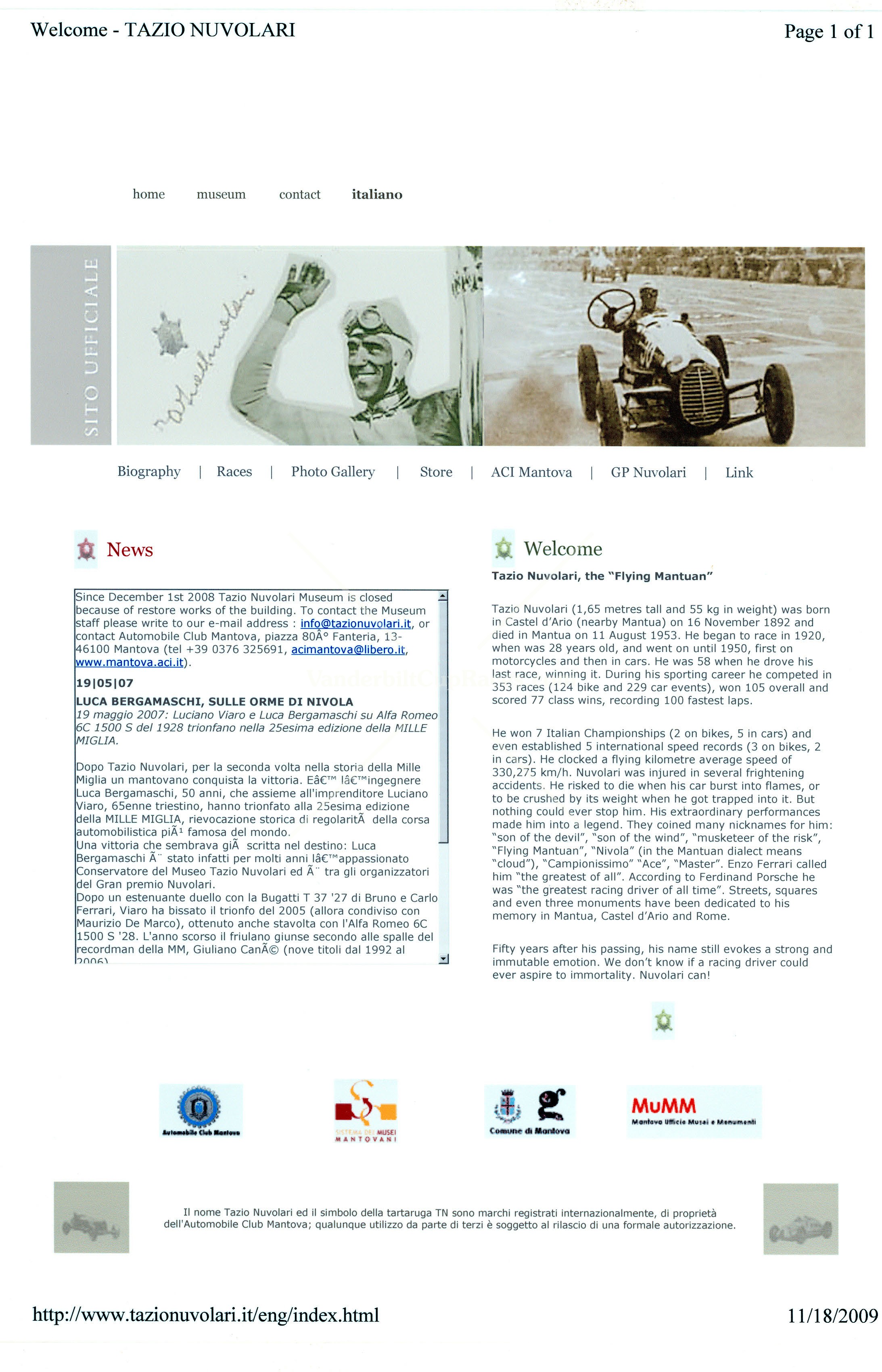 TazioNuvolari.com: Features information on the winner of the 1936 Vanderbilt Cup Race winner