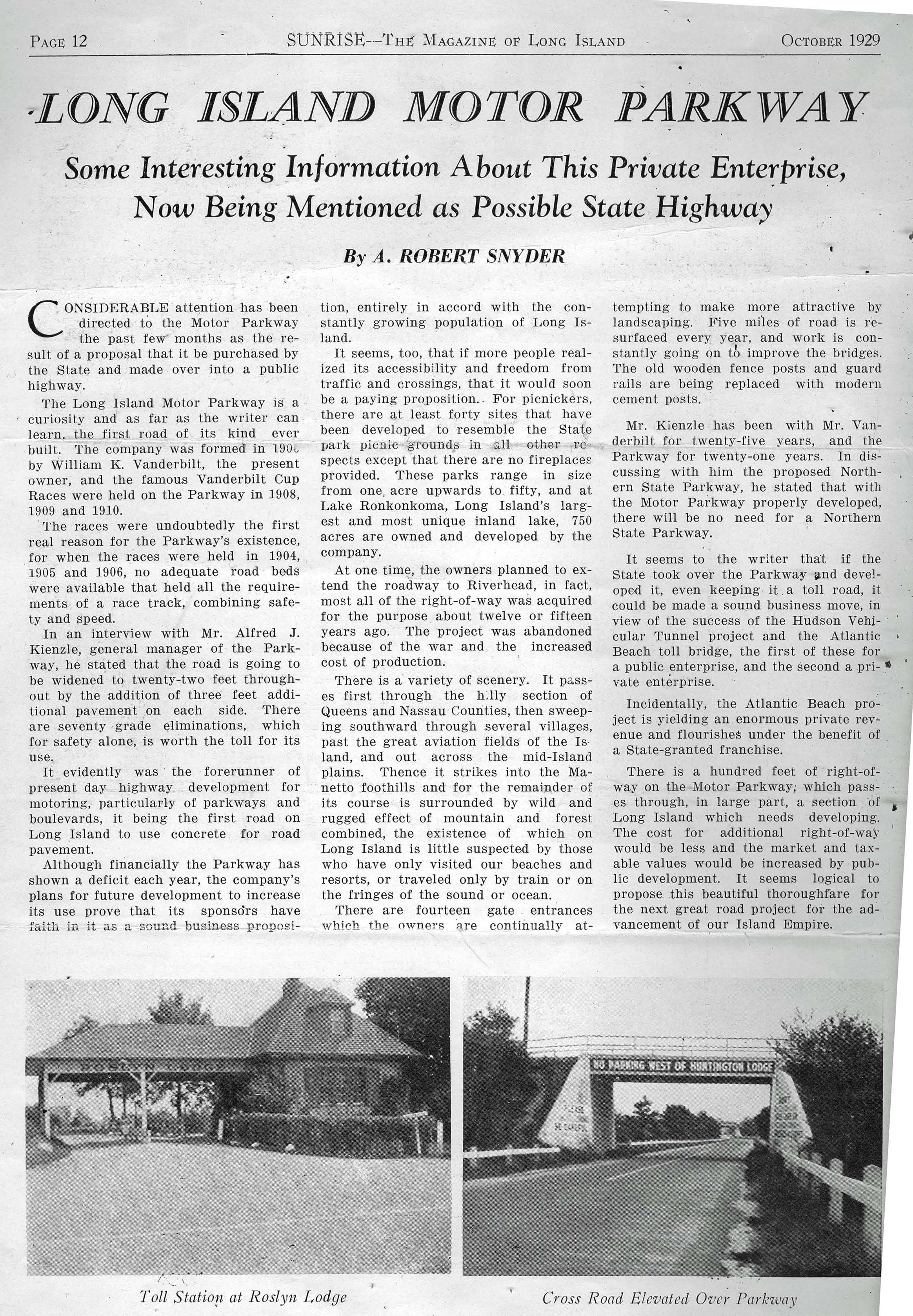 Article “The Long Island Motor Parkway” By Howard Kroplick & Al Velocci
