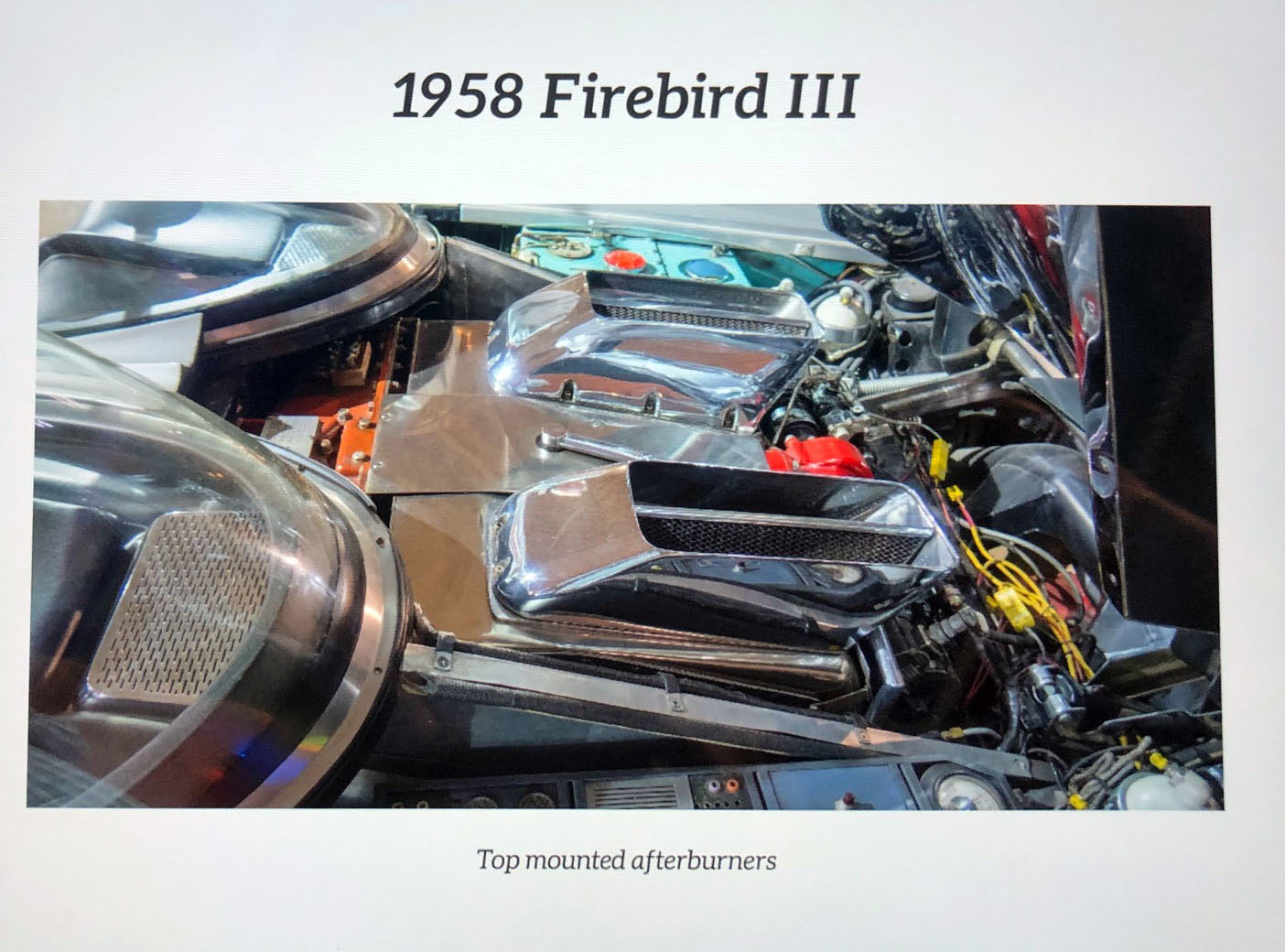 The third GM concept car from the current exhibit at the Audrain Automobile Museum in Newport is the 1958 Firebird III.