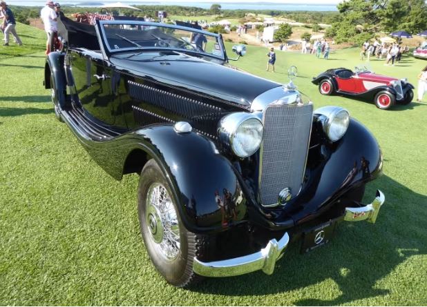 A 1937 Mercedes-Benz 320 Cabriolet A was one of the few pre-war cars on view, along with the 1935 BMW 319/1 Sport in the background.