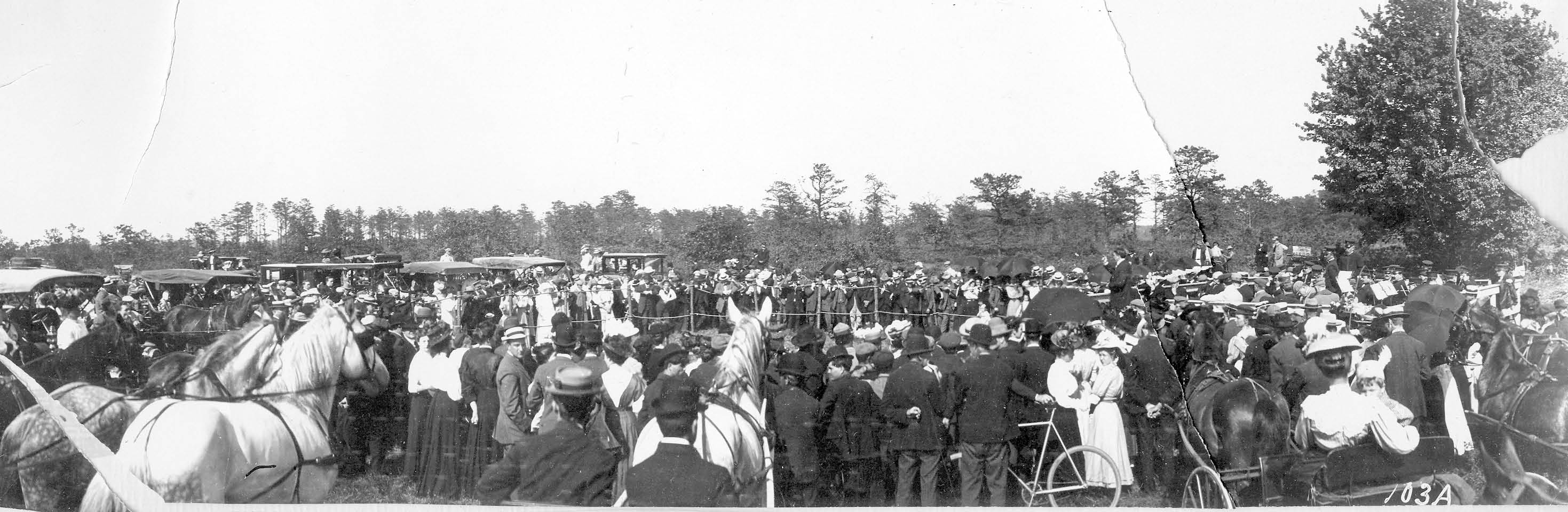 The Long Island Motor Parkway ran through Bethpage’s Central Park starting in 1908. The William K. Vanderbilt Cup Races from 1904 through 1910 challenged American automakers to challenge European-made cars for speed, power and performance. In Bethpage the 1908 Cup Race crossed farm roads that came through Central Park before the Motor Parkway’s local leg was built. In all the Motor Parkway encompassed a 44-mile stretch from New York City (now the Brooklyn-Queens Greenway bike and pedestrian trail) into Long Island, stretching to Lake Ronkonkoma in Suffolk County.
