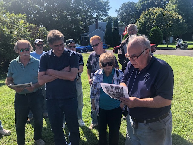 This August the two local nonprofit organizations, the Long Island Motor Parkway Preservation Society and the Central Park Historical Society got together for a Motor Parkway field trip, exploring the Bethpage section of the Motor Parkway that exists today. There, Bethpage memories and tales were told by Ann Albertson, Lenny Mulqueen, Paul Merin and Arthur Mauriello during a group stroll. Membership in the Long Island Motor Parkway Preservation Society is free and registration is available online.