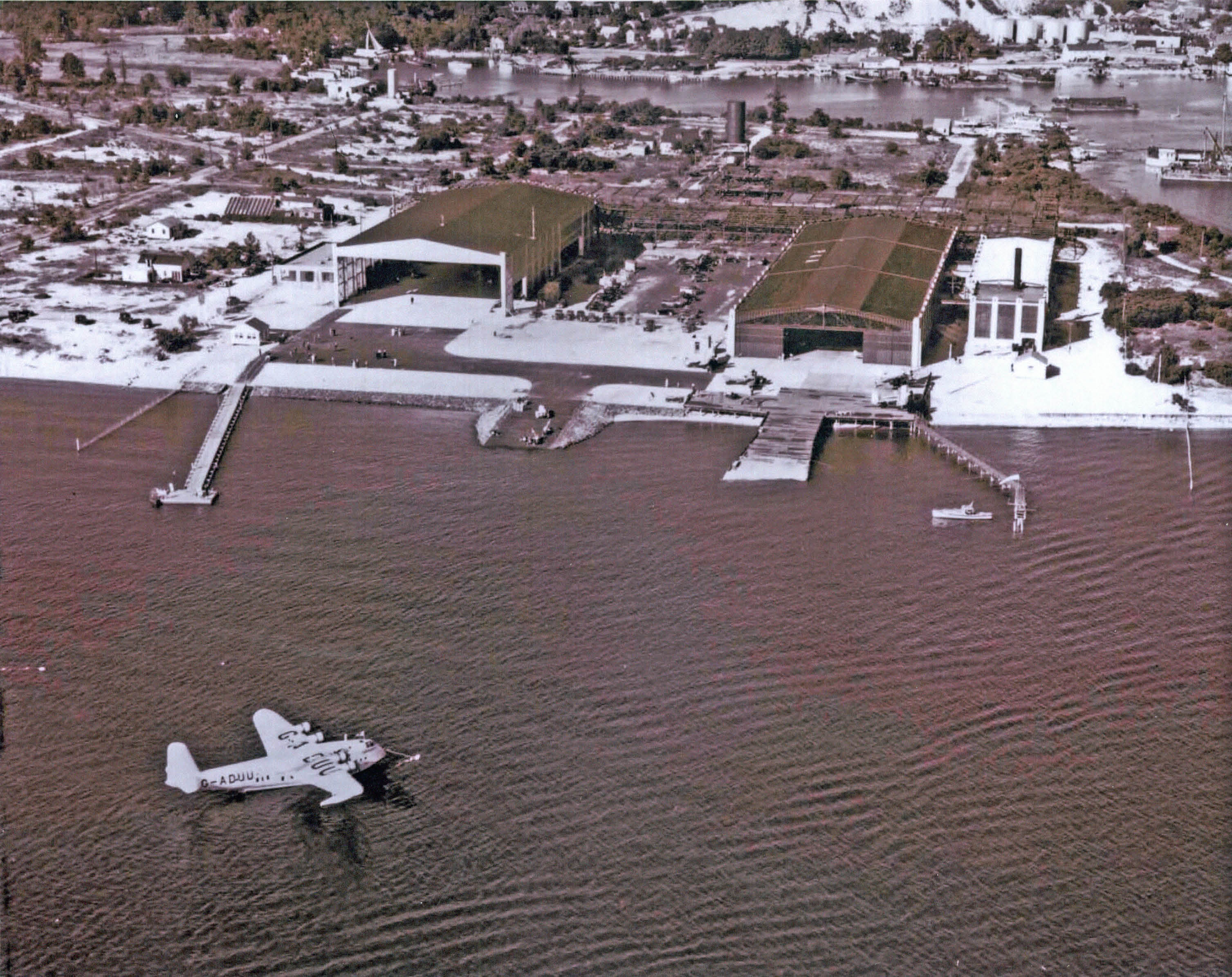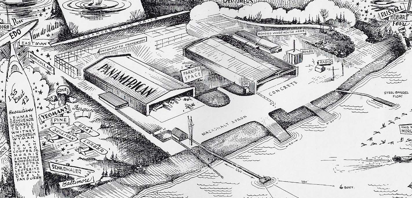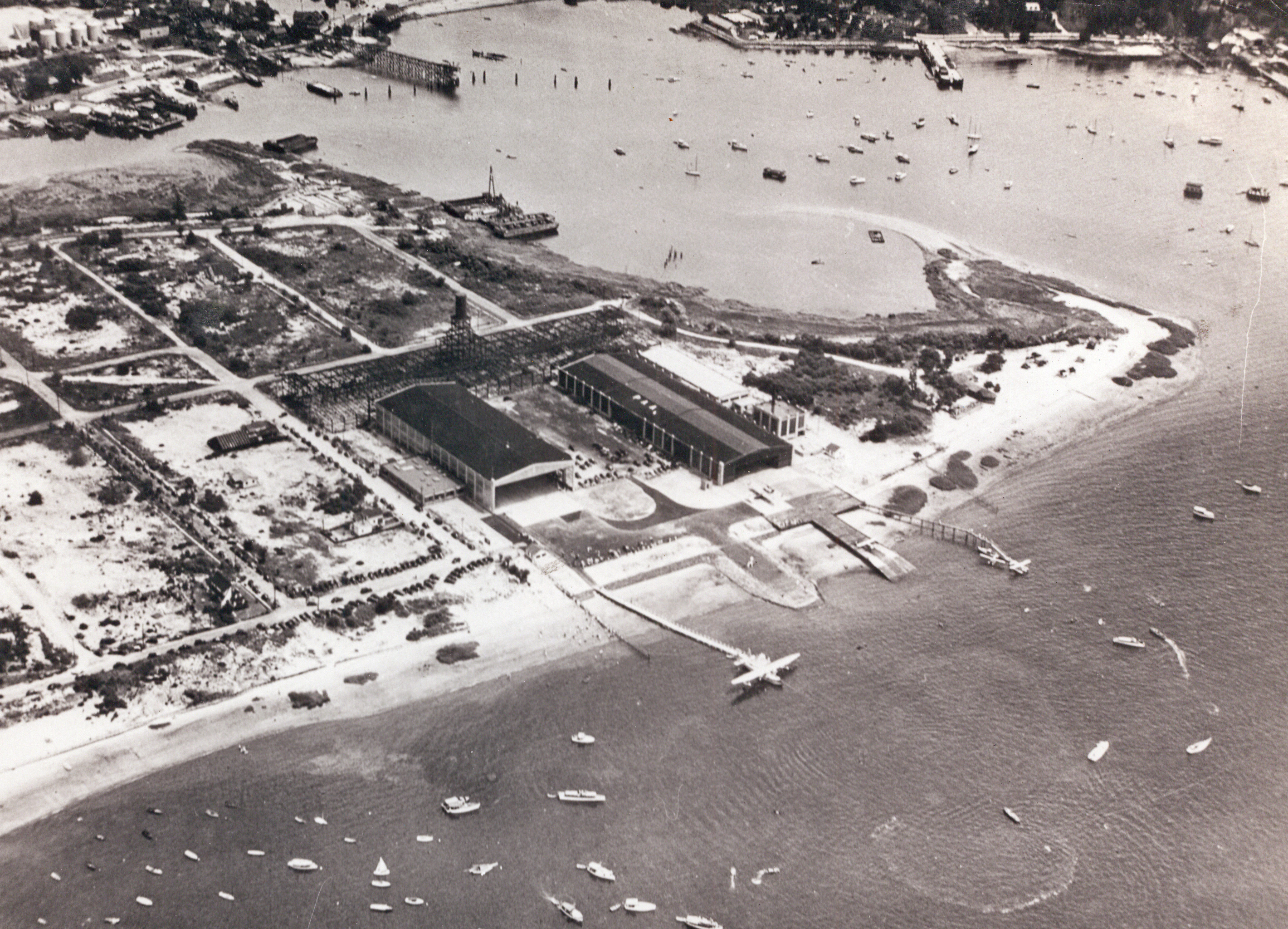 The two seaplane terminals/factories were built originally for Pan Am (1933) and American Aeronautical Corporation in 1929. The framework for another building was being constructed.