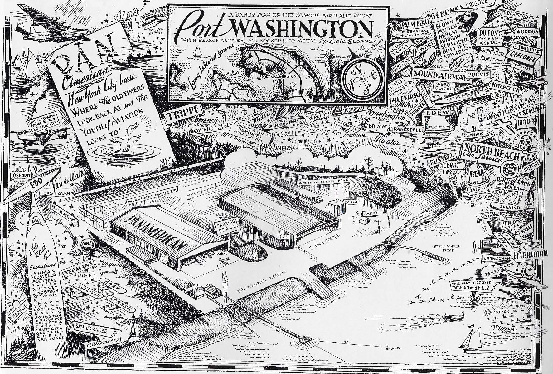 Eric Sloane, one of my favorite artists of the era, created this humorous metal map of Port Washington around 1938. .