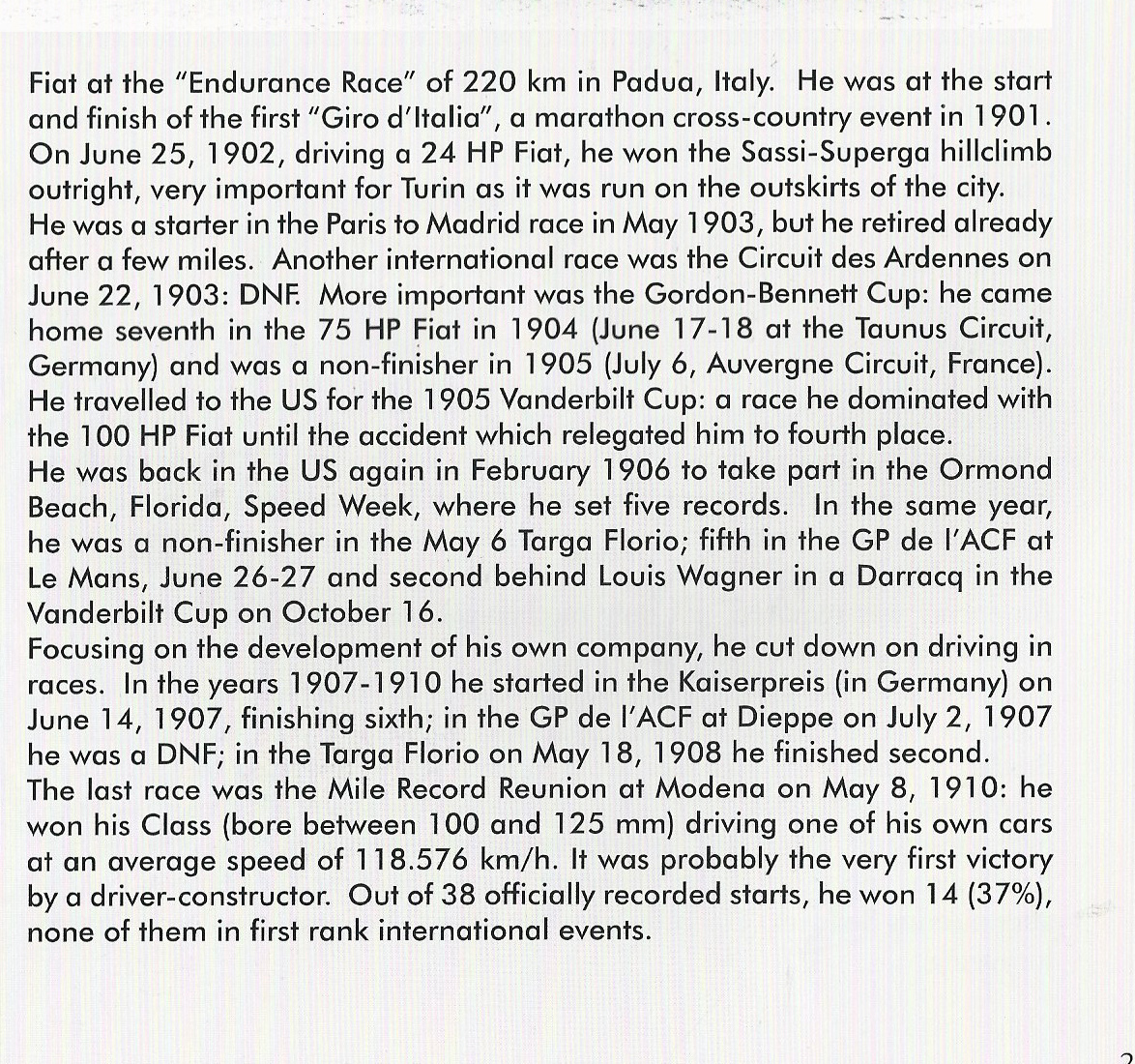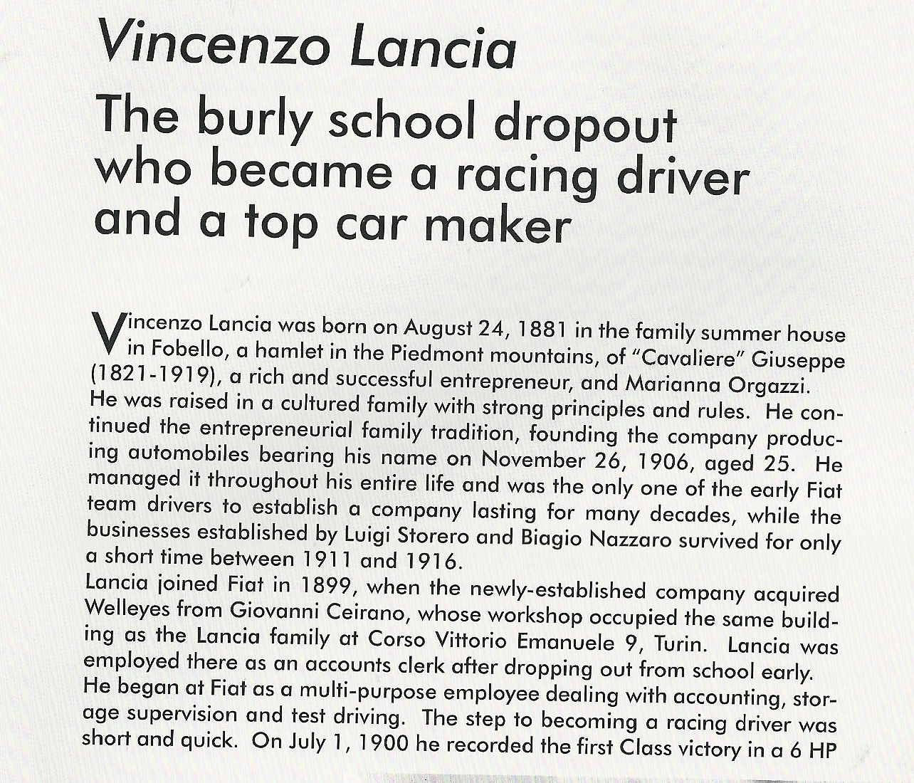 The second excerpt from Aldo Zana's book Monzanapolis- The Monza 500 Miles-The endless America-Europe challenge features a brief summary of Vincenzo Lancia.