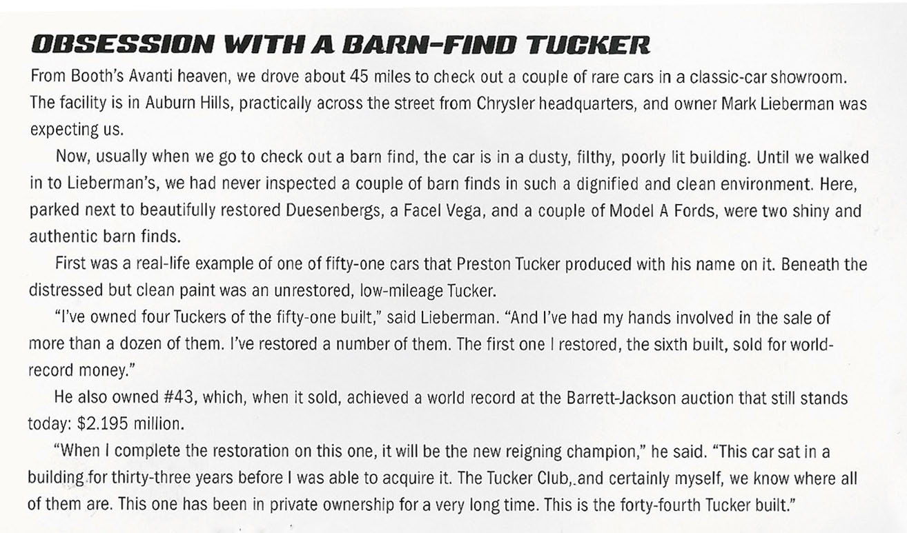 In this chapter of the book, Tom described how Tucker 1044 was acquired by its previous owner Mark Lieberman in 2016.