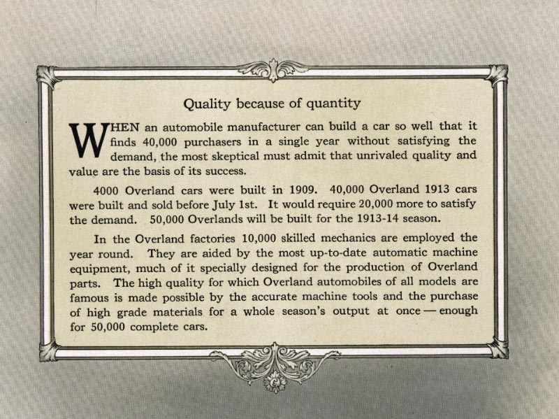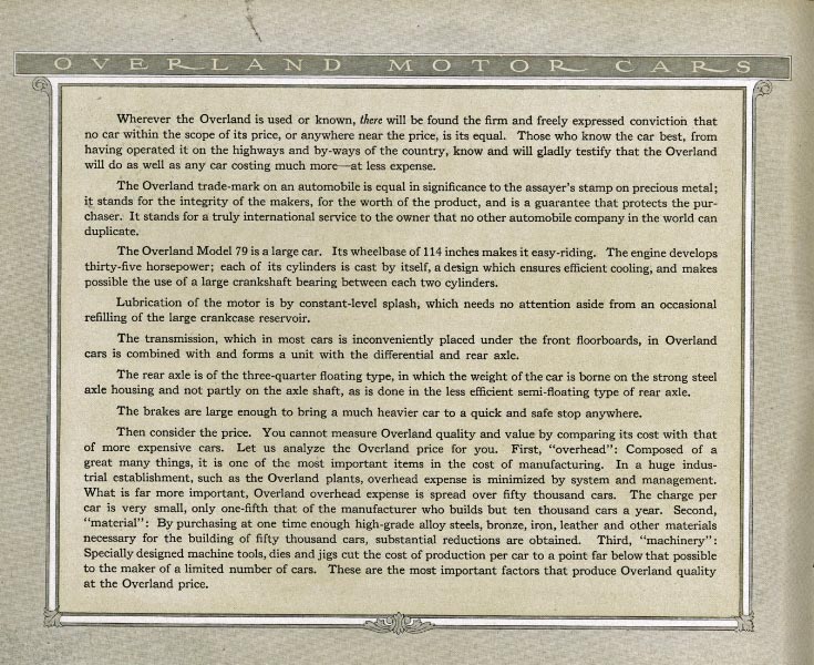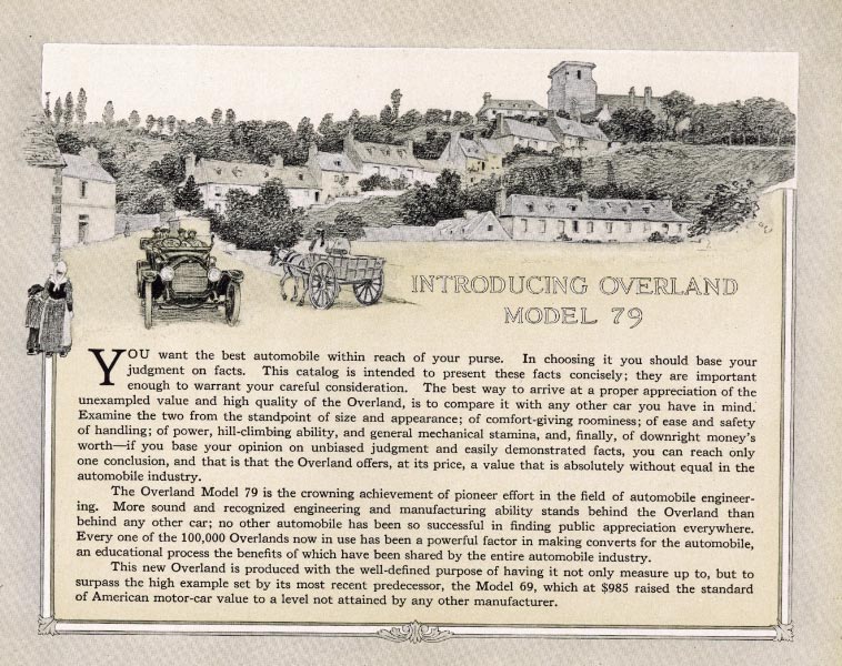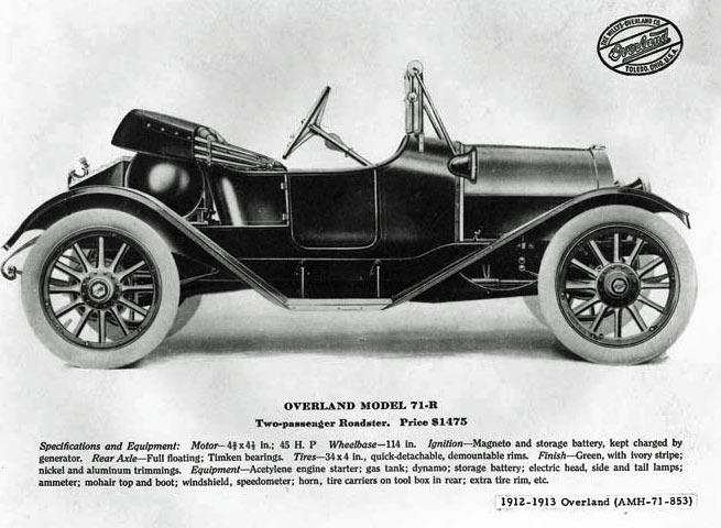 A friend has a 1913 Touring and I think they made a mid-year change of the cowl. In this era car companies began installing front doors on the touring cars - they were called fore door models. [not four] The Overlands were quite good cars in their early years. The speedsters were like a low-cost Mercer.