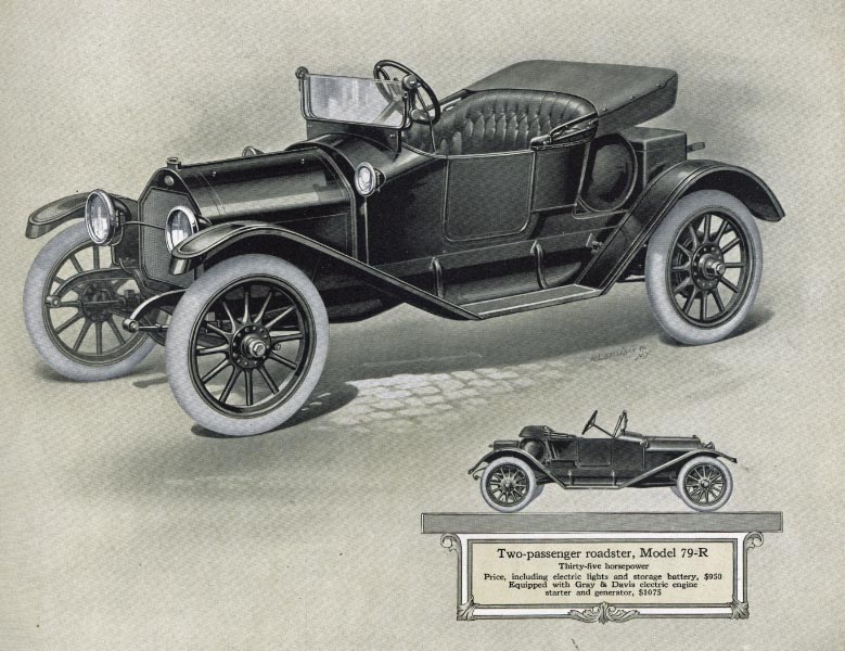 -The 71R was a 1912-13 model with a 114" wheel base. Many of its parts would b-e used on the 1914 79R, body, round gas tank and electric lights. The body looks to be the same as the 1913 69R, too. The electric lights are Gray-Davis as Cadilla used.