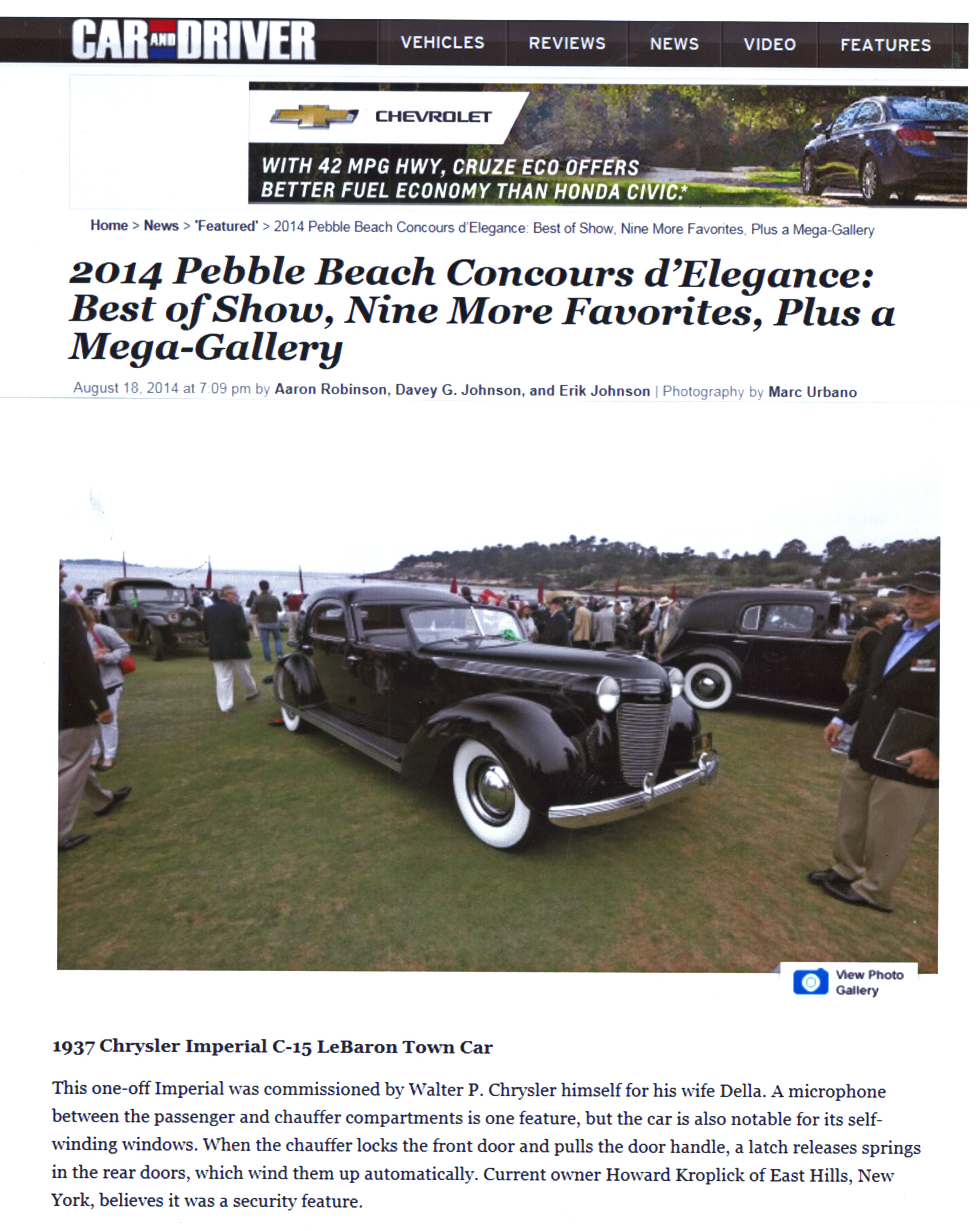 The Chrysler look’s great, good luck. Congratulations at Pebble Beach