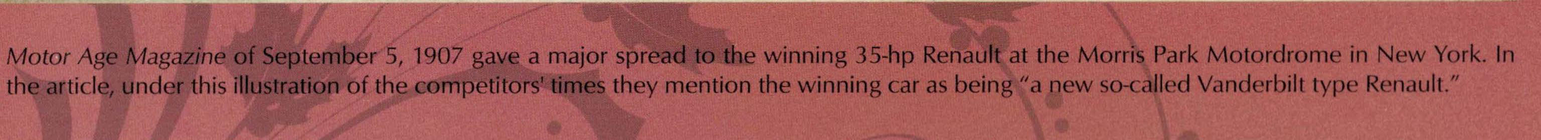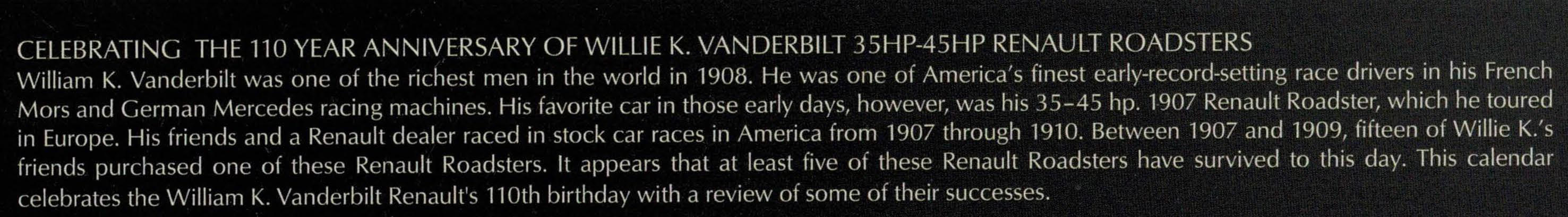 Dr. Fred Simeone and Chris Webb of the Simeone Automotive Museum have forwarded images from the museum's 2018 calendar celebrating the Renault Vanderbilt Racers.