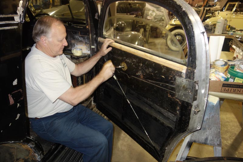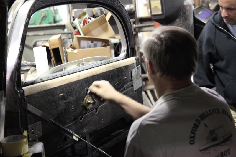 To date both front doors have been restored and rehung in place. The front and rear doors on the right side, now back in place, latch and fit perfectly for the first time in over 50 years.
