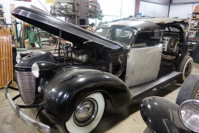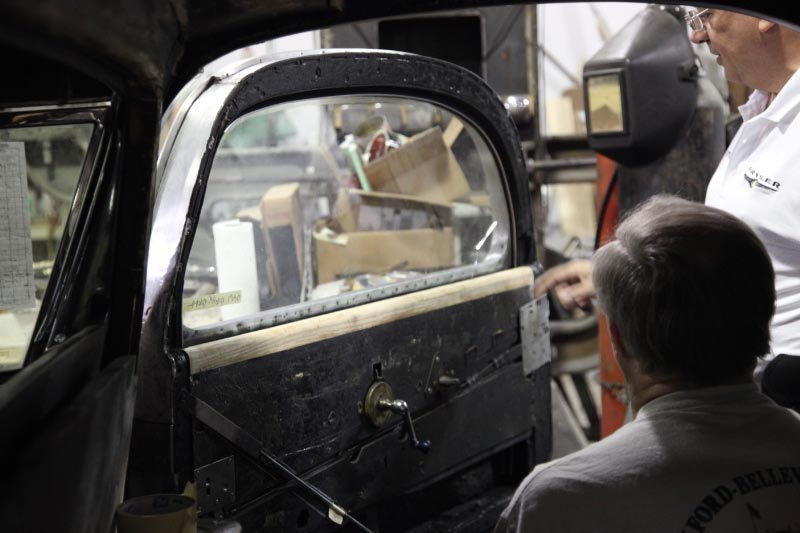 The restoration of the structural integrity of the coachwork continues. Weak wood framework in the rear doors and lower body in the trunk area is currently being restored. The four doors are the prime focus of the wood and metal workers. They all need to fit, open, close, and latch perfectly before any cosmetic refinishing will take place.