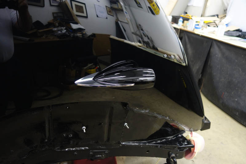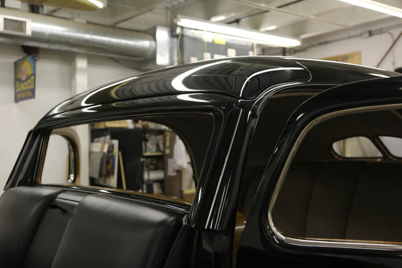 The recreated cover panel that caps the body at the B pillar (the original panel was lost years ago) has been installed as have the rain gutters above the rear doors.