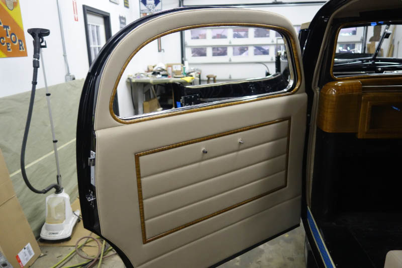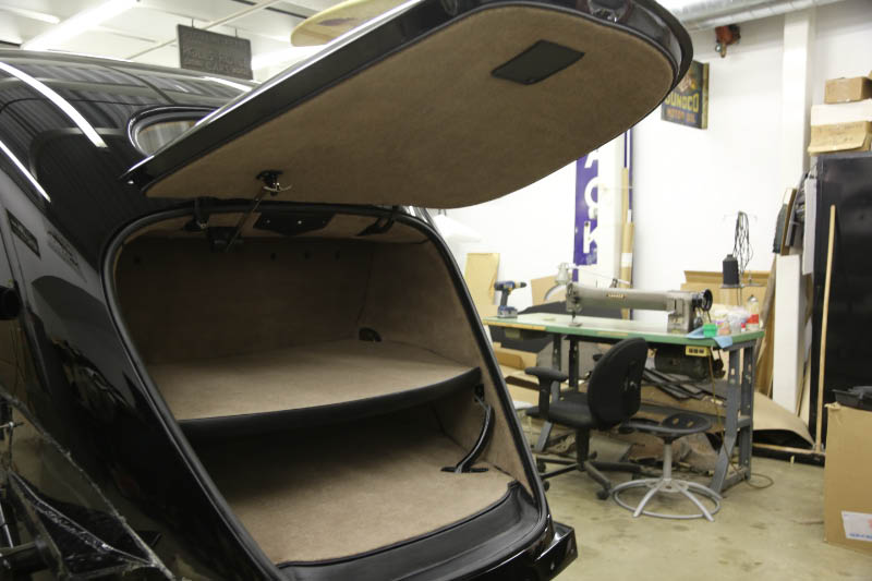 The large width of the rear doors could not be sewn in the sewing machine normally used that has a 20 inch arm depth. A sewing machine with a 25 inch arm depth had to be brought into the shop (this is a large cast iron piece of equipment) to do the job.