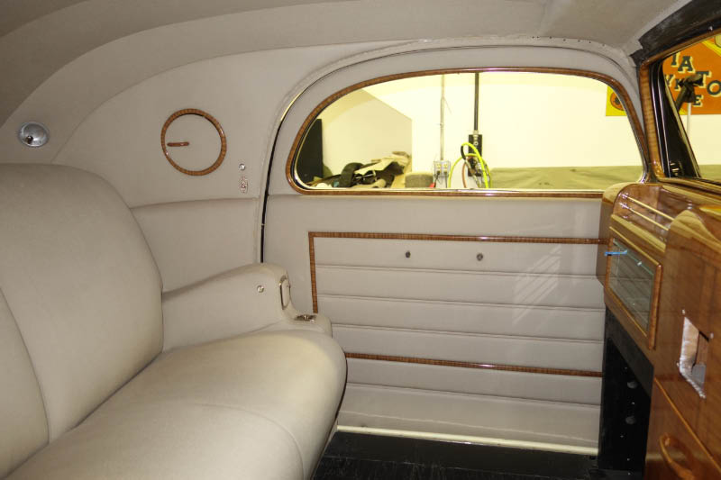 The right rear quarter panel shows the assorted buttons connected electrically to the components to serve the amenities of the rear compartment - call button to the chauffeur, vanity light, reading lights, and one separate button to illuminate the clock to be able to have it seen clearly in the dark at night. No wonder there is 1,500 feet of wire under the upholstery in the rear compartment.