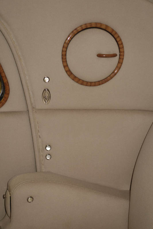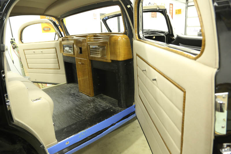 With both rear doors open the beauty of the horizontal panels in the upholstery can be seen. The interior is as amazing to view as is the outside of the car.