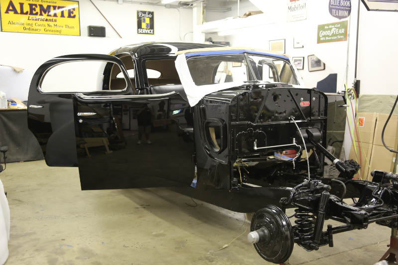 We visited Automotive Restorations on June 14th, Flag Day, so the flags were out for our country and it was a banner day for us as well to see the progress that had been made in exactly one month.