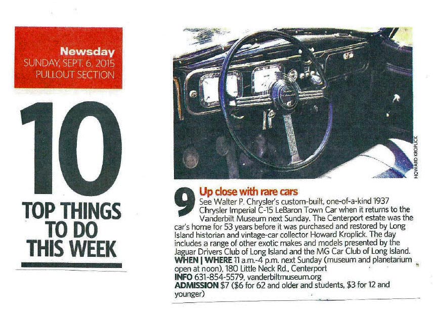 Chrysler’s Chrysler Returns to the Vanderbilt Museum on Sunday