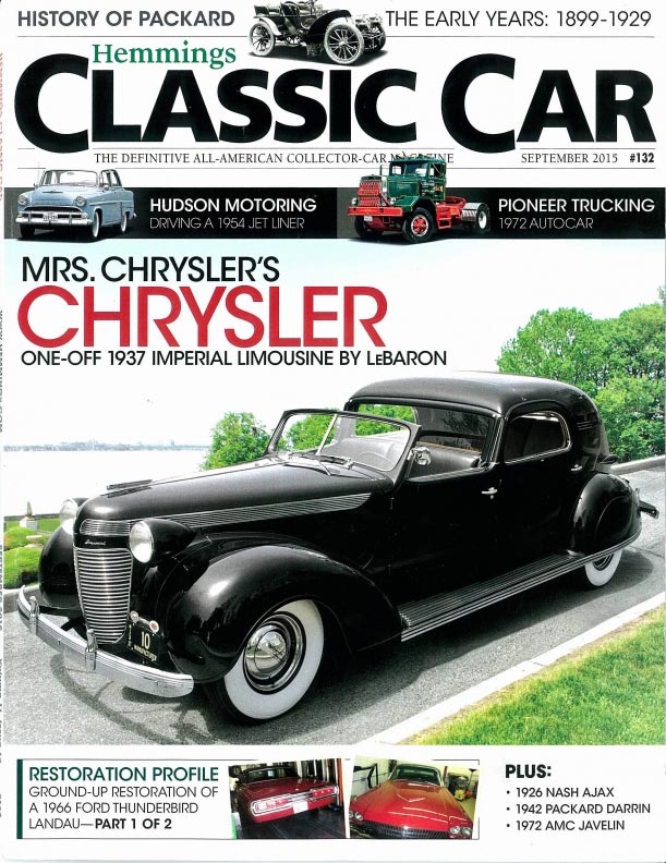 “Only 281 of the 750 cars that applied were accepted,” he said. The Chrysler won the First in Class award in the American Classic Closed category. One month later, Gwynne McDevitt, granddaughter of Walter P. Chrysler, and her son, Frank Rhodes Jr., sat in the car at the Radnor Hunt Concours d’Elegance in Malvern, Pennsylvania.