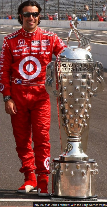 Indy 500 star Dario Franchitti with the Borg-Warner trophy