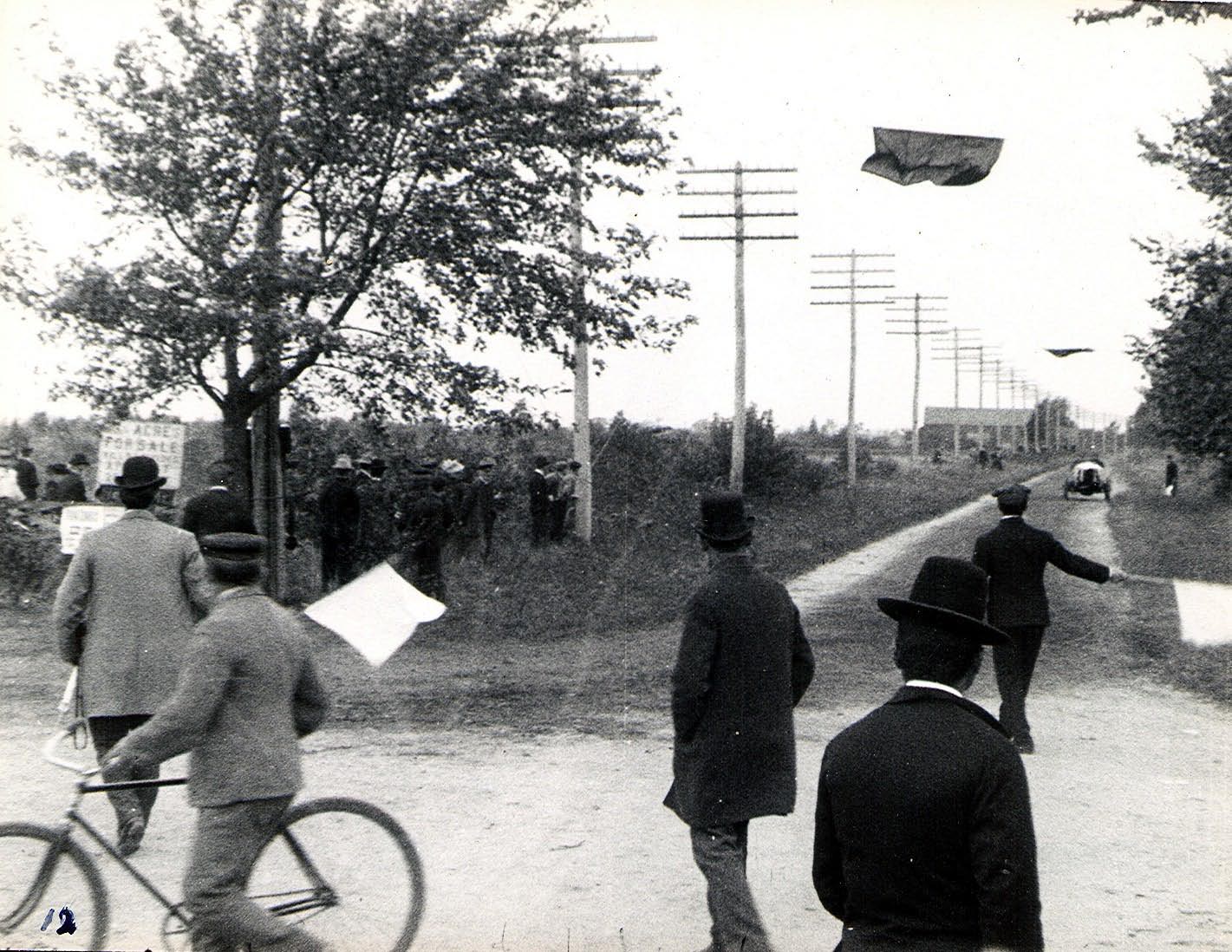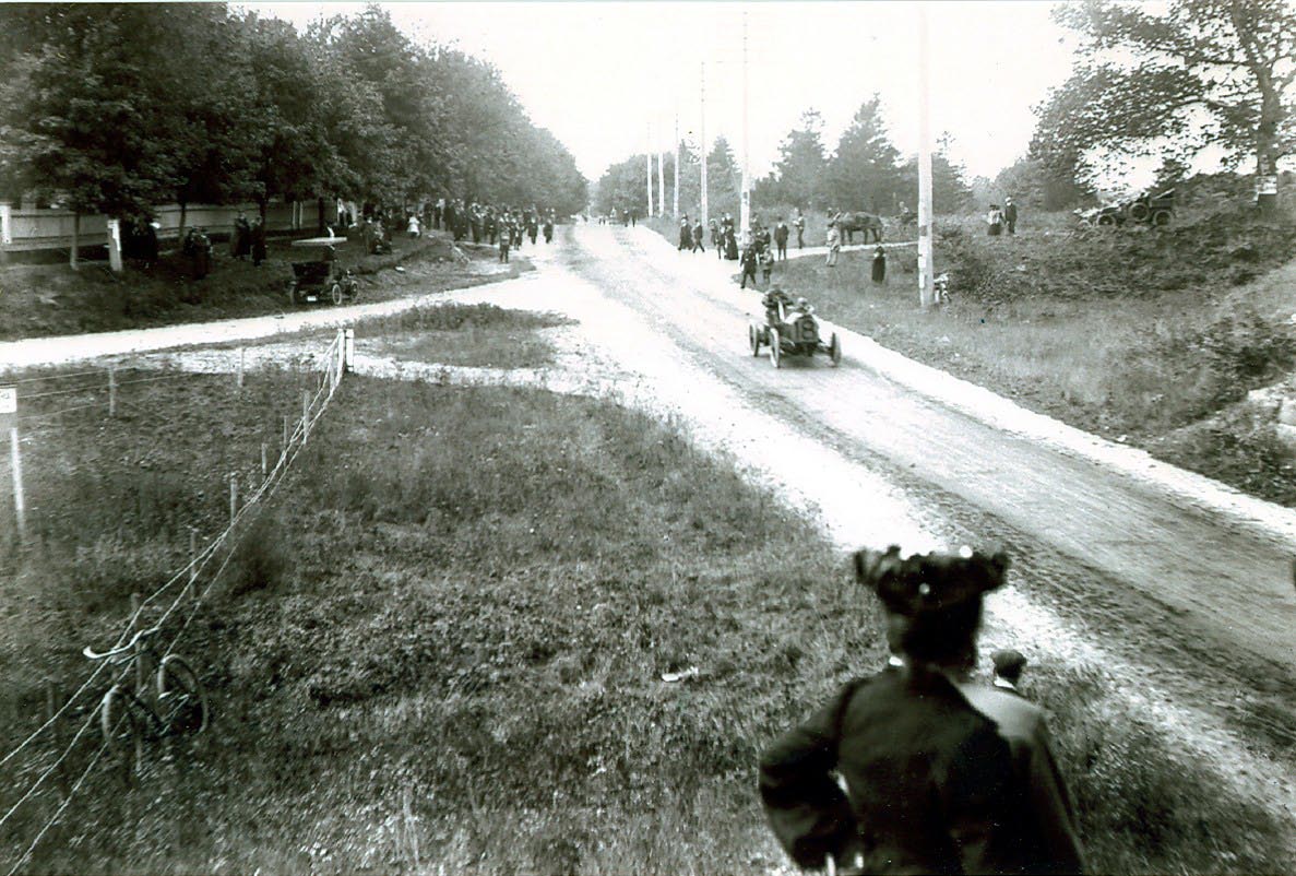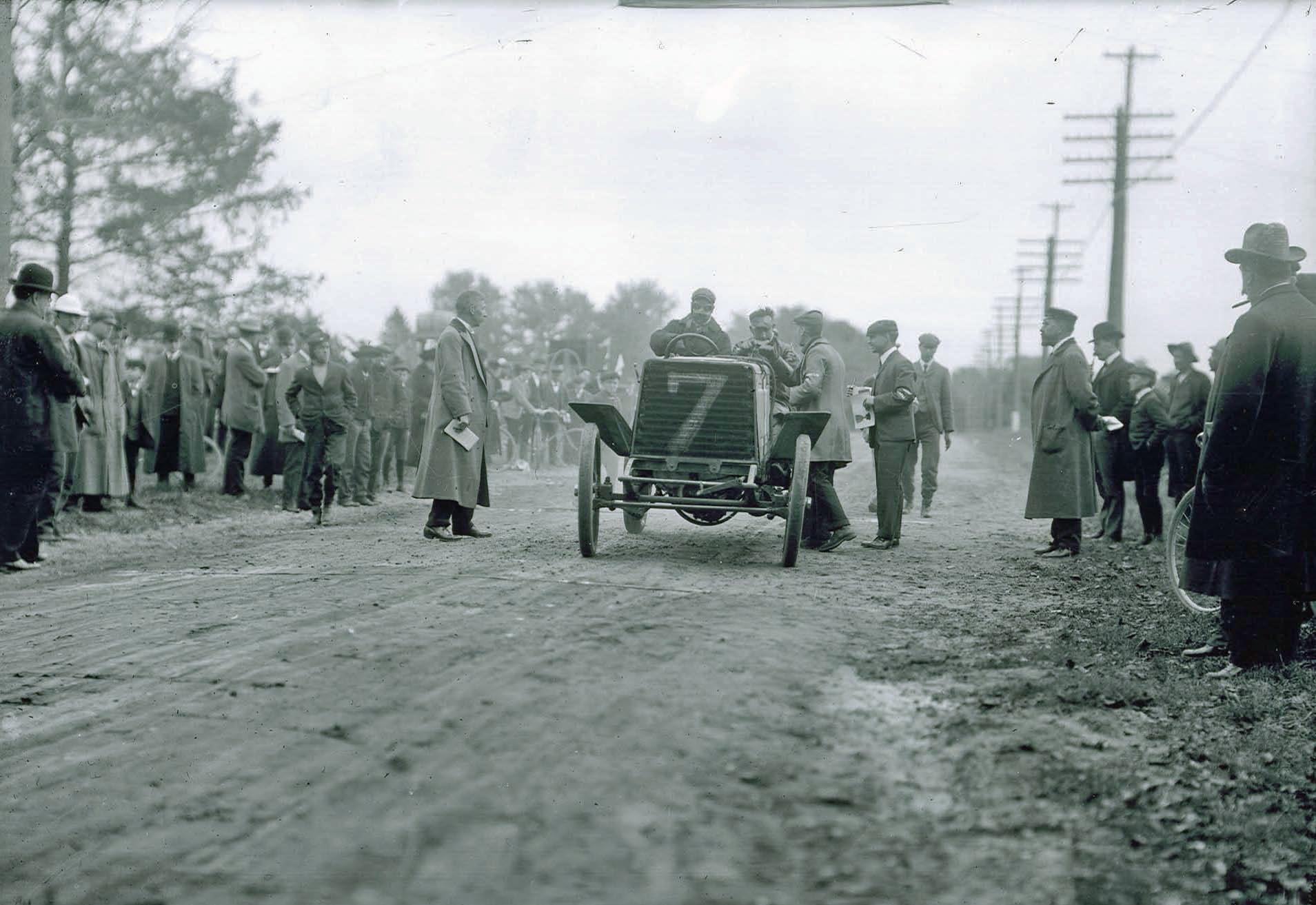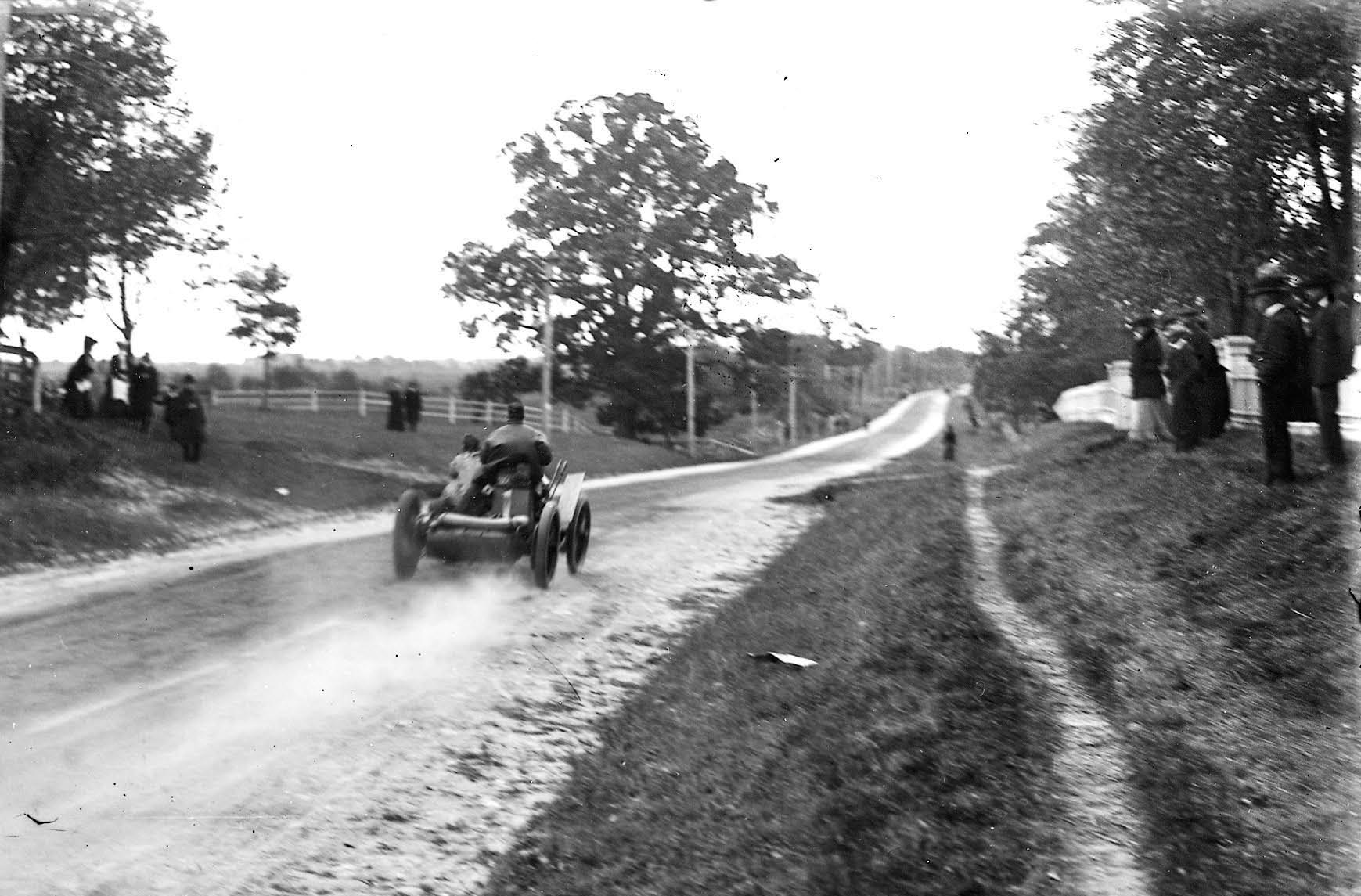 Attendance estimates for America’s first international road race ranged from 15,000 to 50,000 people, depending on the source. In an article for the October 13, 1904 edition of Motoring & Boating, William K. Vanderbilt, Jr. wrote, “I traveled the course twice and judge there must have been over 50,000 people standing at the roadside.” Motor Age acknowledged the wide range of estimates. “Some place it as low as 15,000, estimating the spectators as low as 500 per mile of the circuit. A program man, who sees big crowds and made a circuit of the course that day, puts the number at 50,000, declaring there was hardly a break in the line of spectators and that at each of the controls and towns were crowds numbering up in the thousands.”