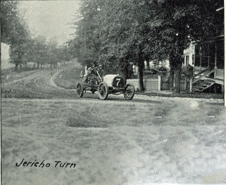The likely location for the photos was the intersection of Jericho Turnpike and Jericho-Oyster Bay Road in the hamlet of Jericho. Given the small number of spectators seen at this popular turn on the 1905 and 1906 courses, the photos were likely shot during one of the practice runs for the 1905 American Elimination Trial held several days before the race.