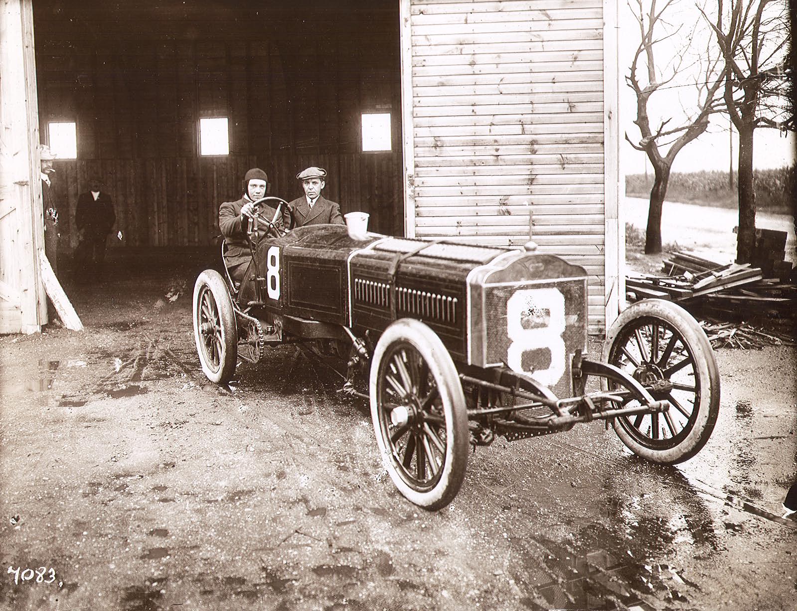 The distinctive numbers on the cars and shape of the #8 car made identification very easy. The two racers participated in the 1905 American Elimination Trial held two weeks before the Second Vanderbilt Cup Race. The race was held to help select the five American entries for the Vanderbilt Cup Race. The A.A.A. Racing Board will have the final power to select the five cars regardless of the outcome of the trial.