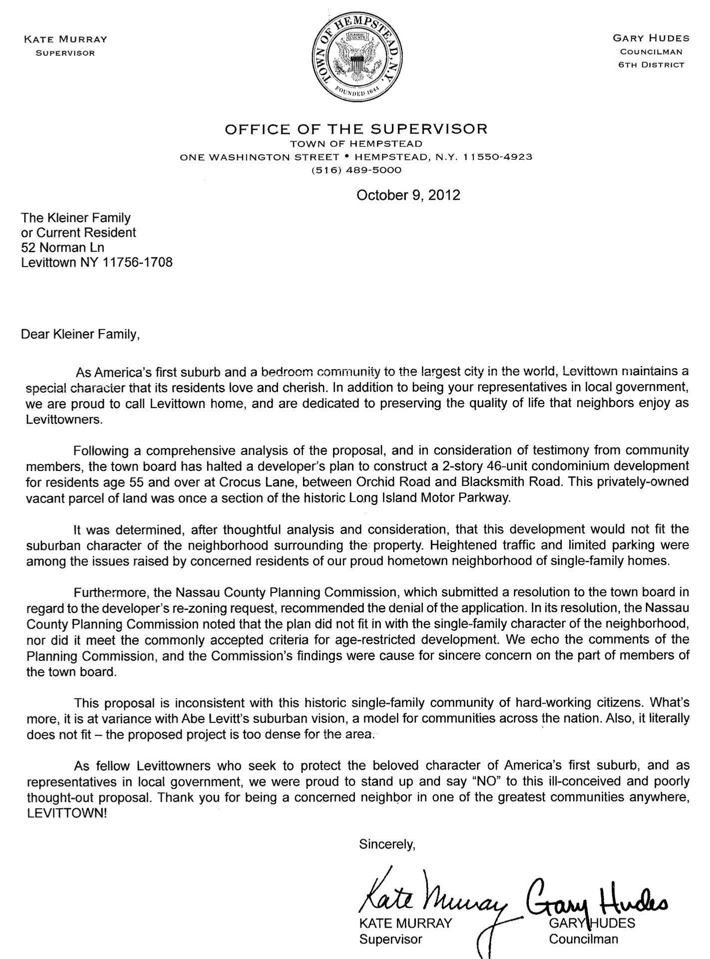 The LPOA indicated that the requirements of the Levittown Planned Residential District (LPRD) would not permit what the developer had in mind. The LPRD was originally enacted by William Levitt and then by the Town of Hempsted Board following its 25 year expiration and contained numerous zoning requirements just applicable to Levittown.
