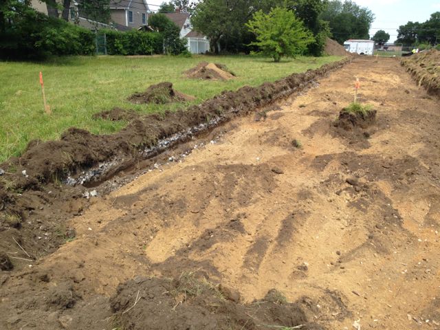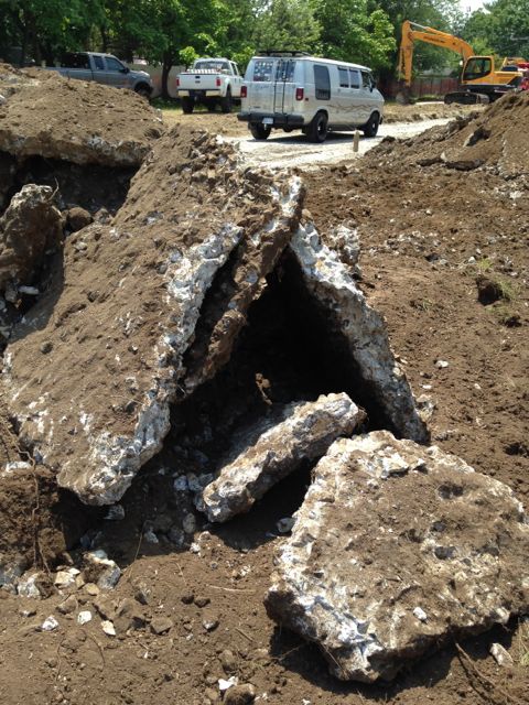 Motor Parkway remnants were plentiful during excavation with a piece or two eventually ending up with the post above.
