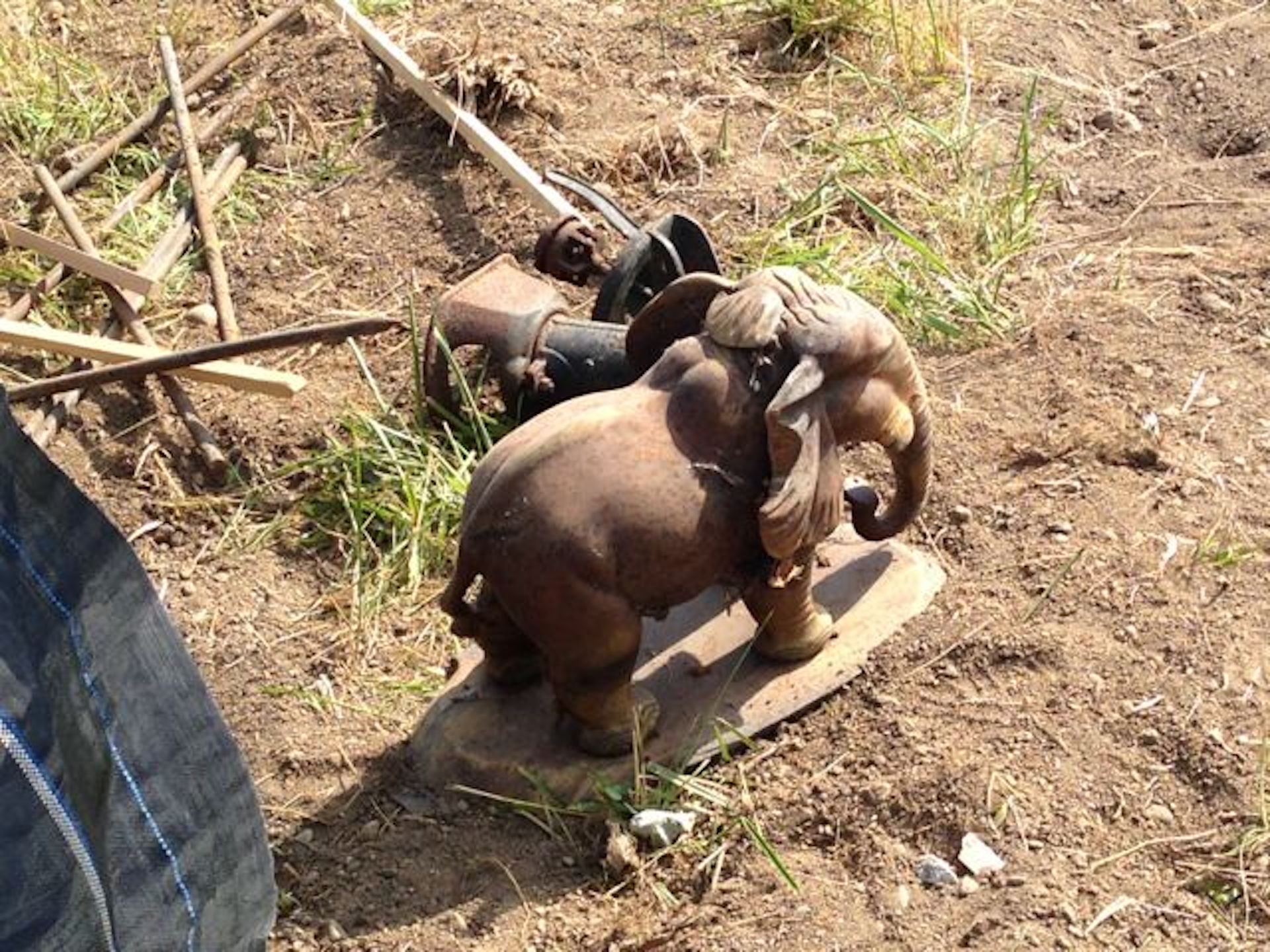 Those Motor Parkway posts have been sitting there all these years? Amazing stuff. I would hope that one of them ends up on display somewhere like the Levittown Library. Don’t know what to make of that elephant! Great work!