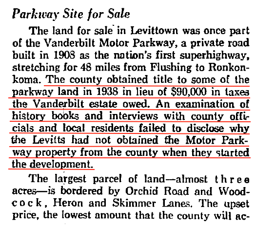 Thanks Art for this historical account of the LIMP near my childhood home of few blocks from this location. I always learn something new here and in this case I was unaware of the 1976 auction. I would love to know why Levitt didn’t acquire those lots. Thankfully the community stood firmly against high density housing which would have been a big mistake. I have a feeling that you are keeping those property posts safe at your home.