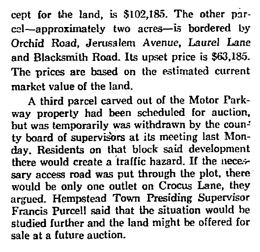 Additional Motor Parkway property was to be auctioned off in 1976. (Al Velocci and Newsday, June 20, 1976)