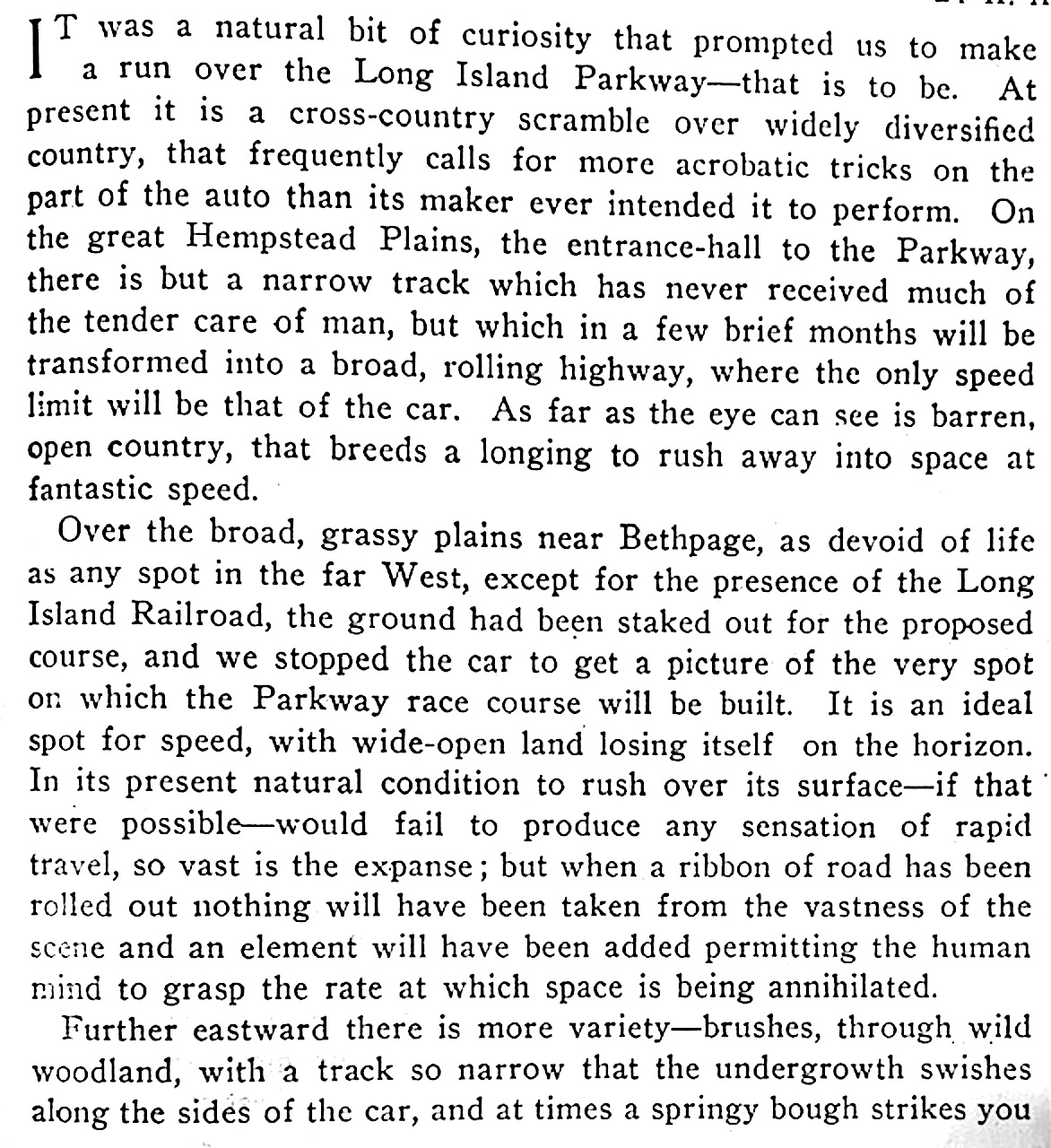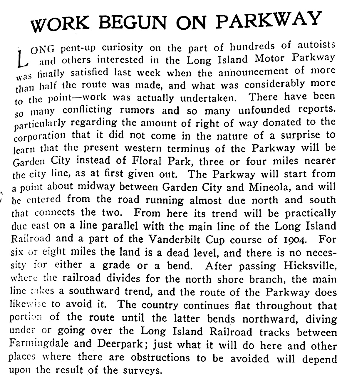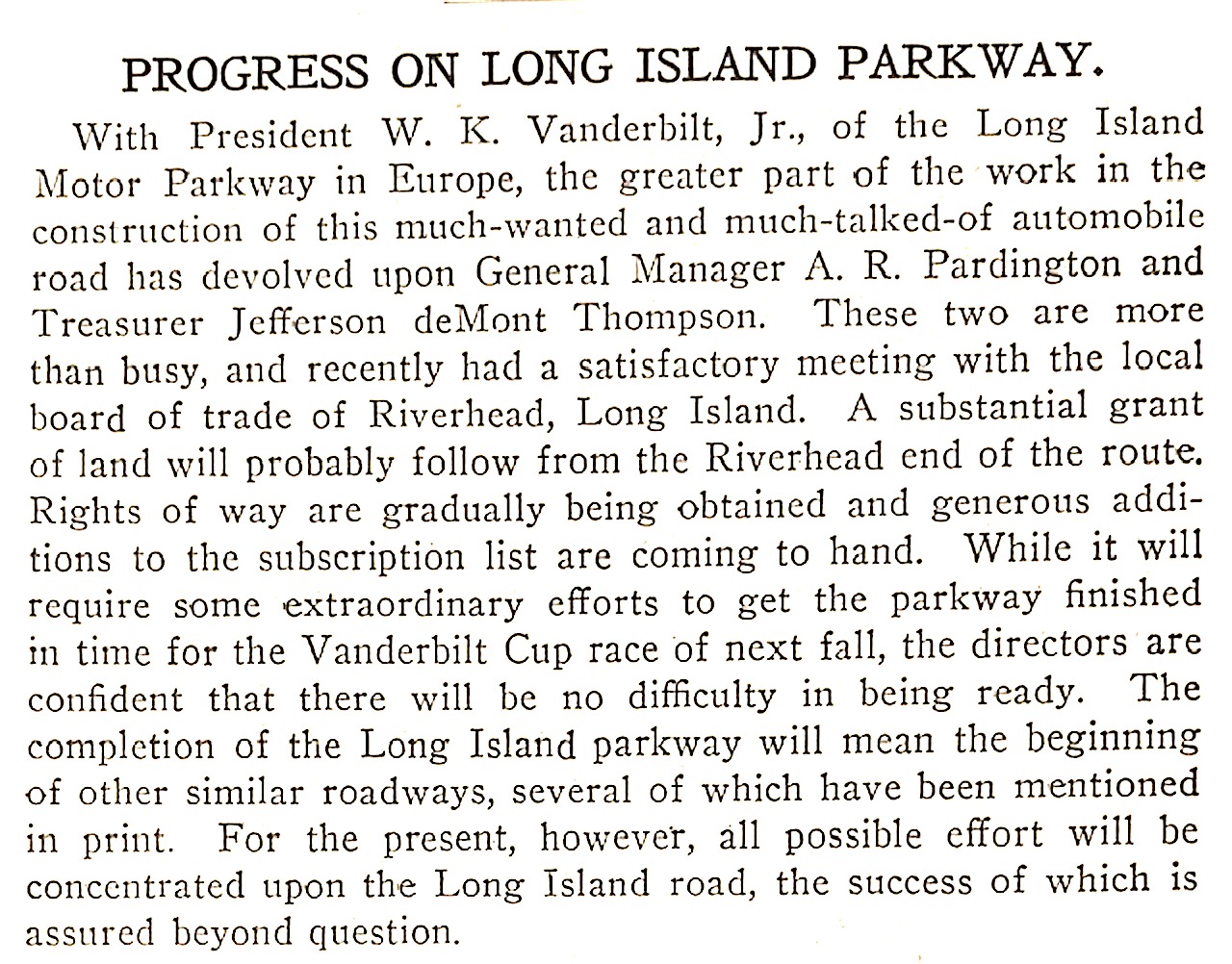 As the Motor Parkway was coming to fruition, "Automobile" Magazine updated its readership with news of its progress.