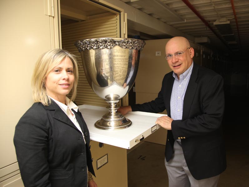 Howard K. and Stephanie Gress, Director of Curatorial Affairs of the Suffolk County Vanderbilt Museum visited the cup at the Smithsonian's storage facility in Maryland in 2009. But where is it now? According to a caption on the Smithsonian website, the cup is on loan. But to whom and where? Howard, Greg and Gram - is that why the Waterfront needs more space? I do have space in my office in NC if the cup is looking for a home. Perhaps 6 months on Long Island and 6 months in NC!