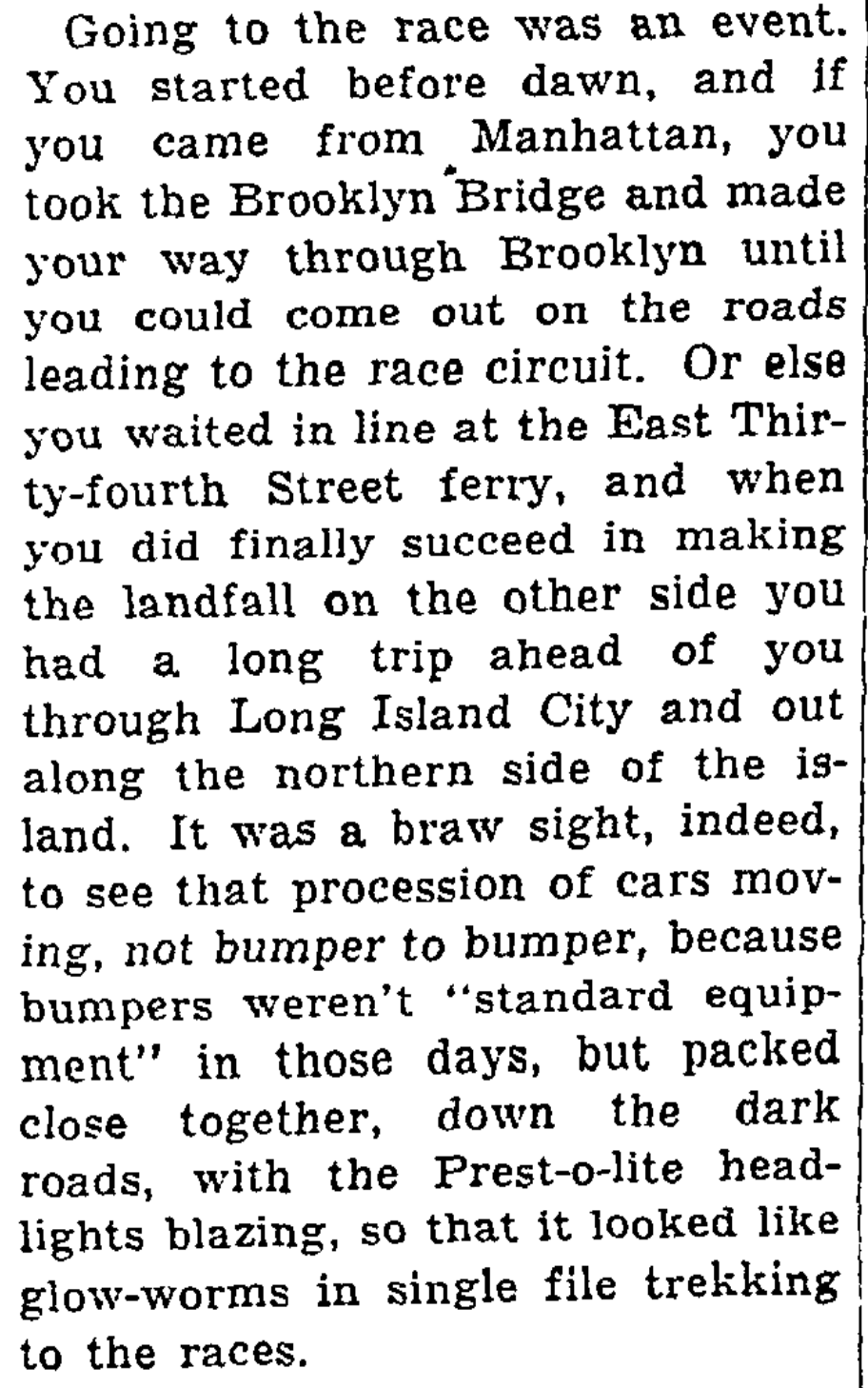 "The dashing Europeans with the famous makes . . . The American cars - were meek and lowly and somewhat overshadowed . . ."