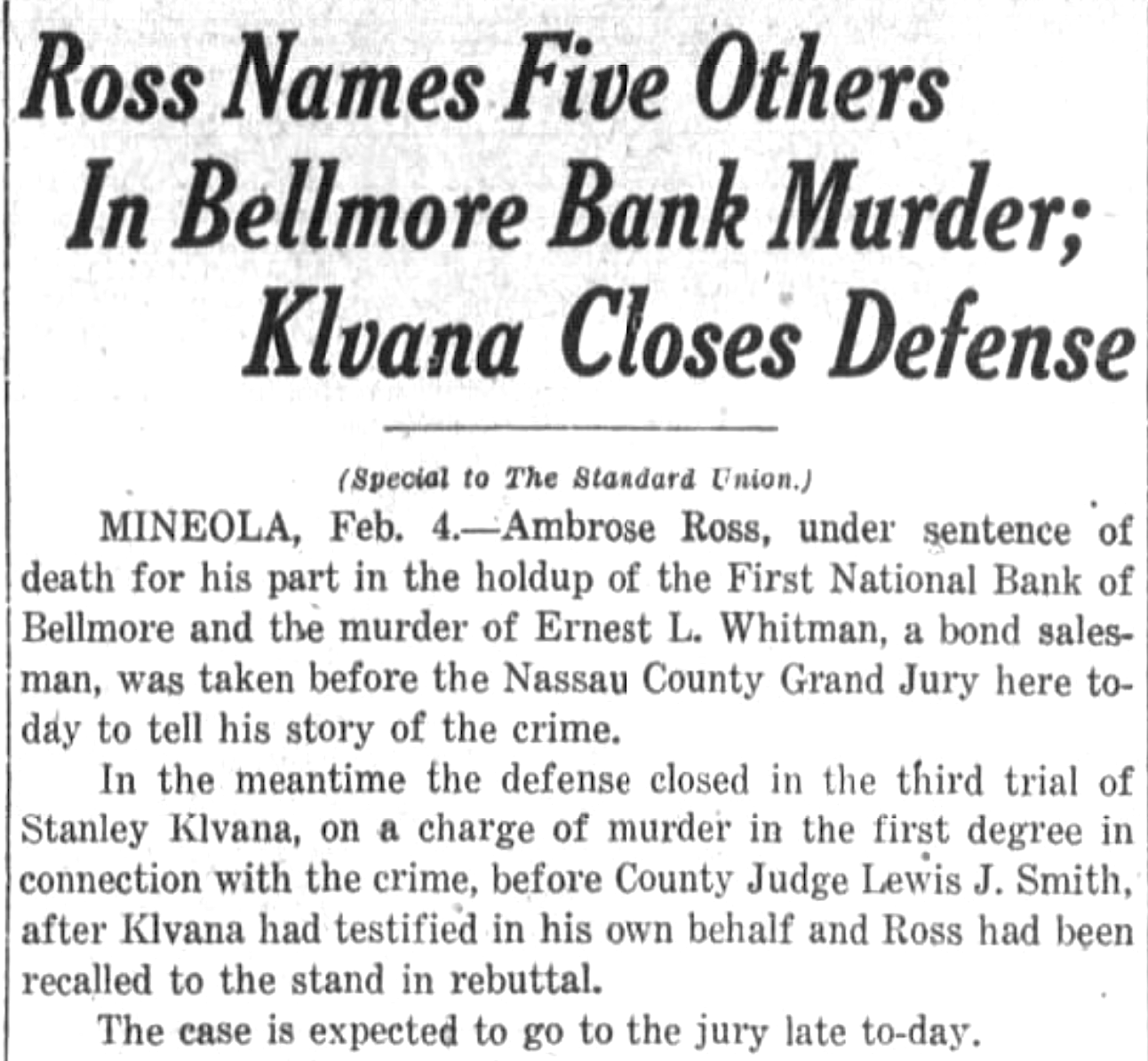 One defendent, Ambrose Rose, testified against other gang members. (Brooklyn Daily Times Feb. 3, 1926)