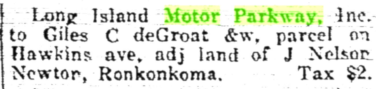 The Motor Parkway sold 1 1/4 acres near Melville for $1,500. (Brooklyn Daily Times Feb. 9, 1926)
